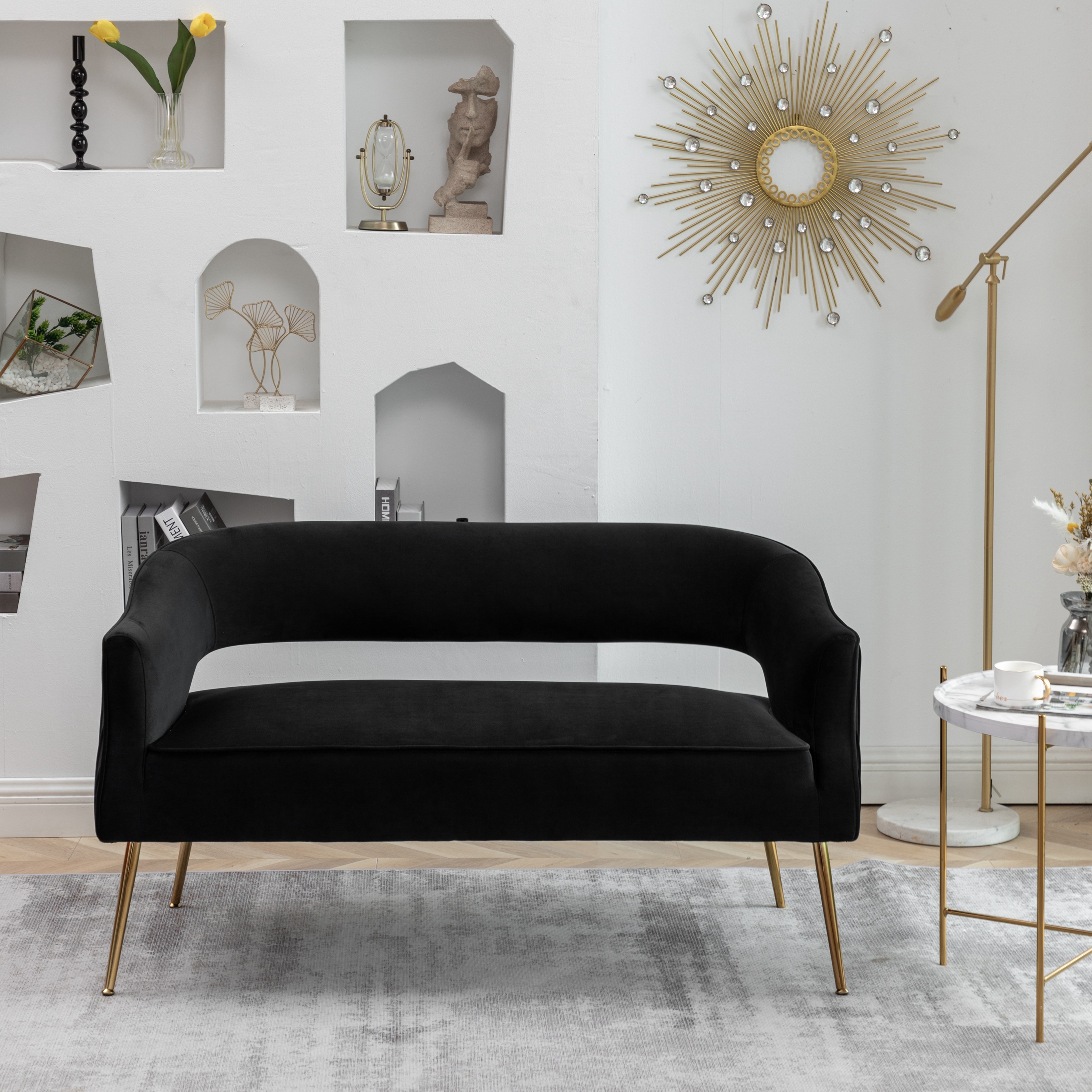 Modern 51'' Velvet Tufted Loveseat Open Back with Golden Metal Legs