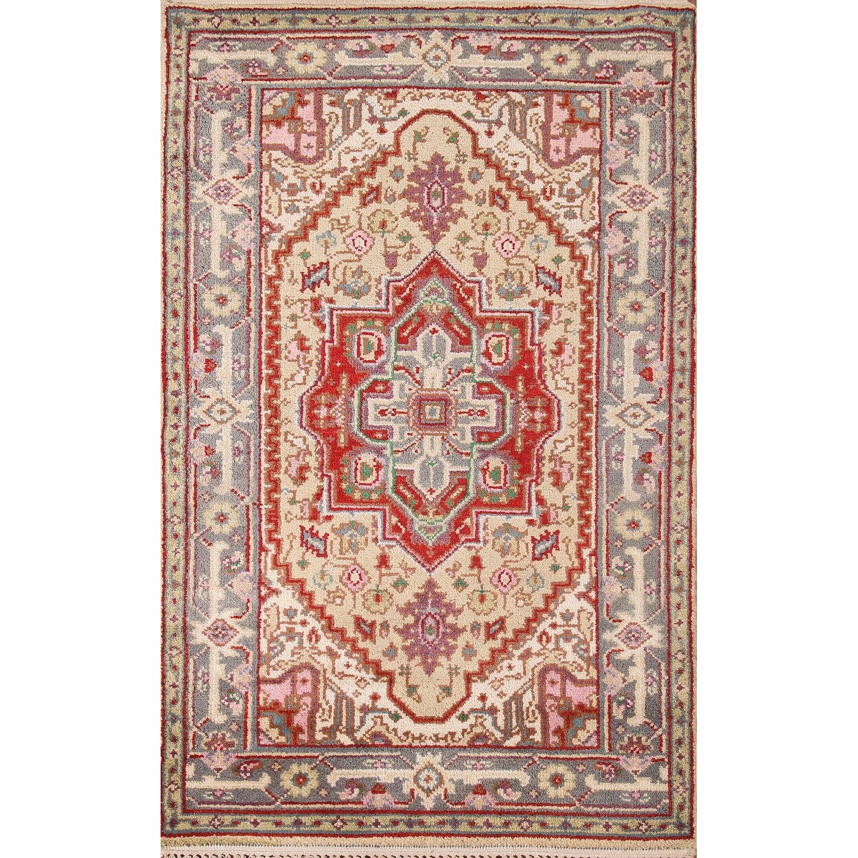 Geometric Beige Heriz-Serapi Foyer Rug Hand-Knotted Wool Carpet - 3'0" x 5'1"