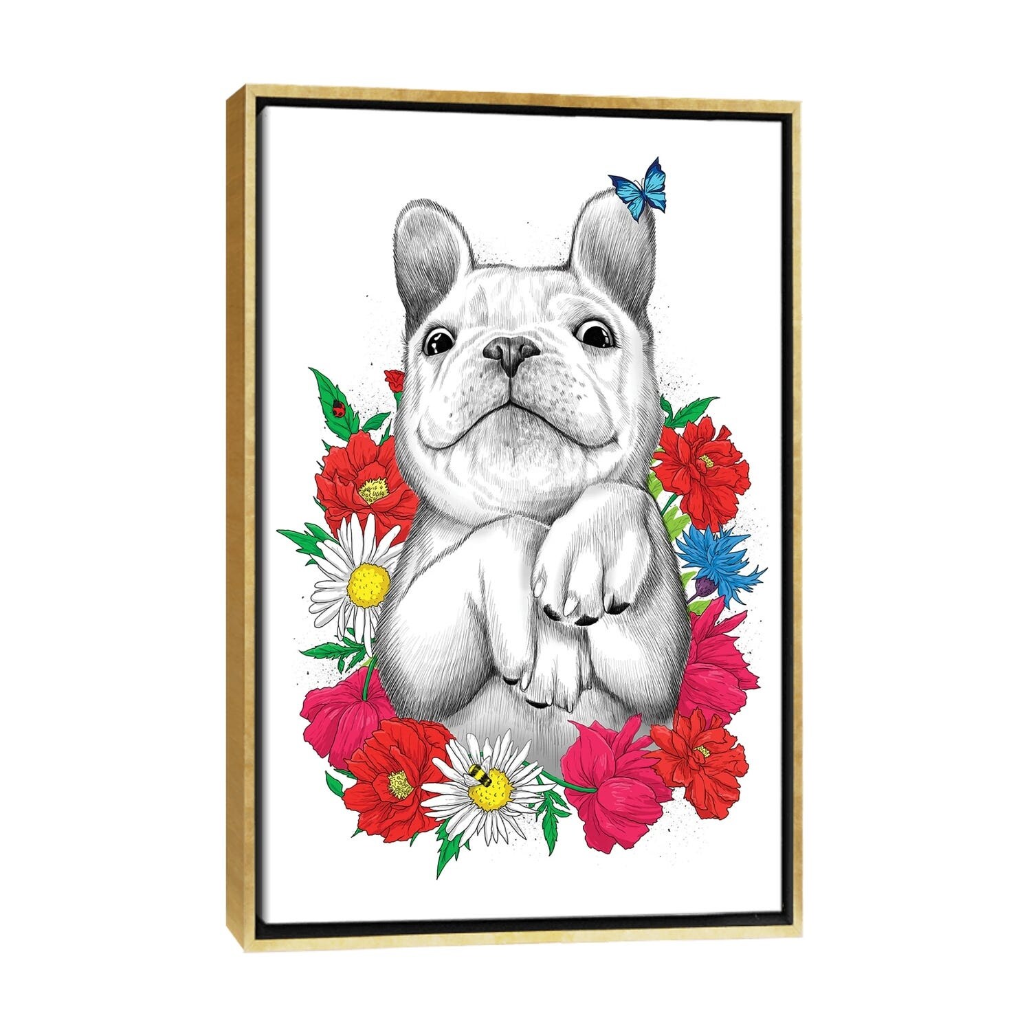 iCanvas "Dog In Flowers" by Nikita Korenkov Framed Canvas Print