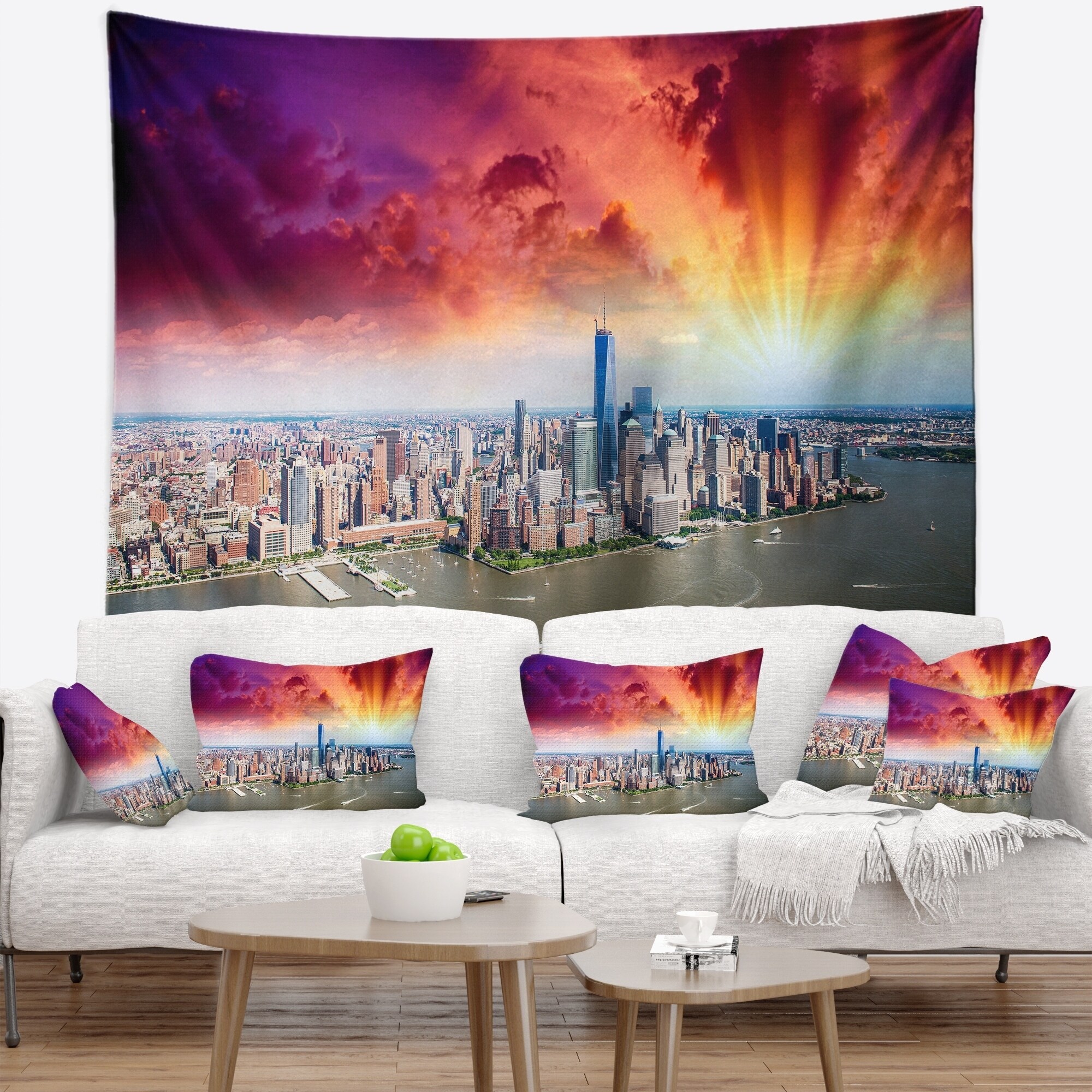 Designart 'Colorful New York Skyline Aerial View' Modern Cityscape Wall Tapestry
