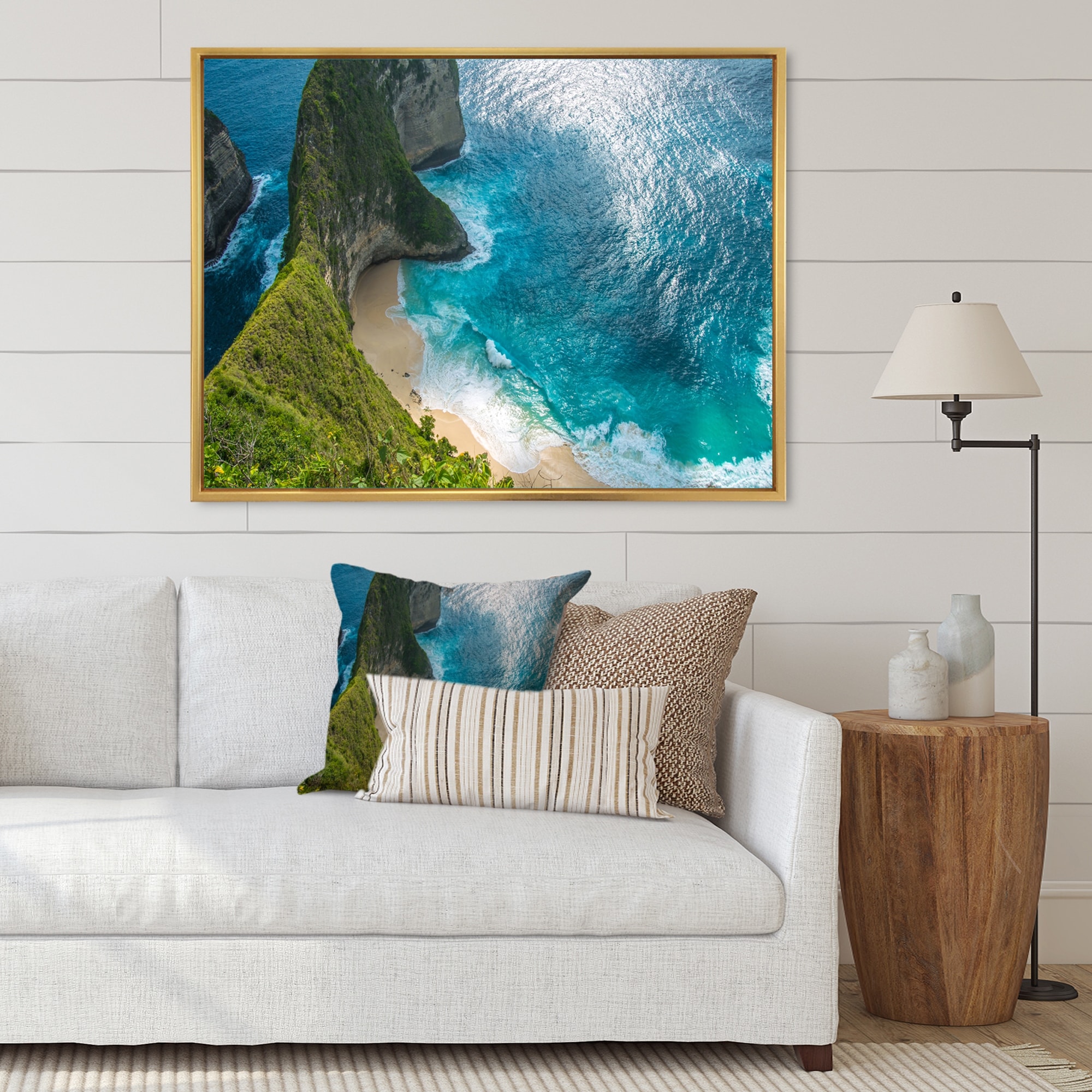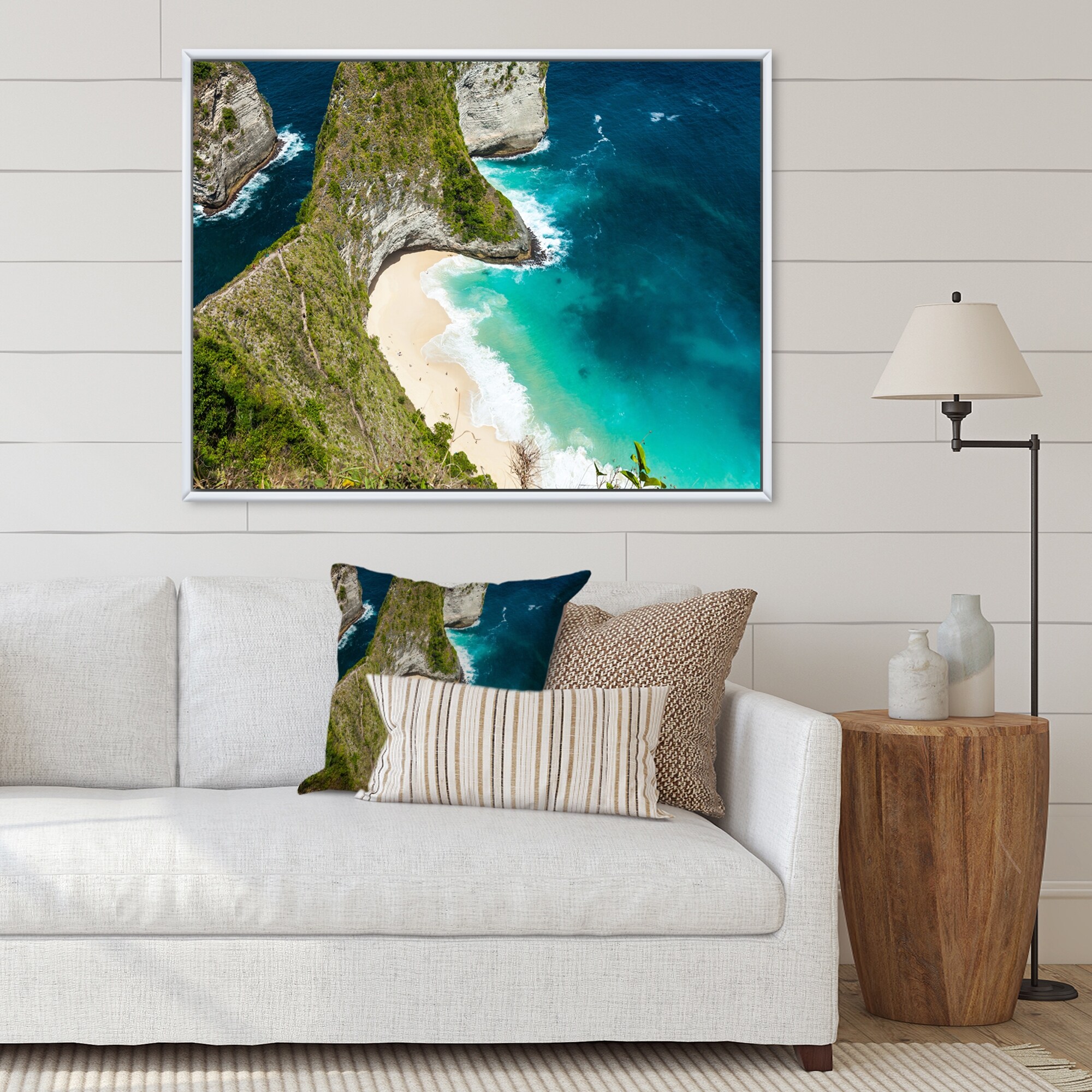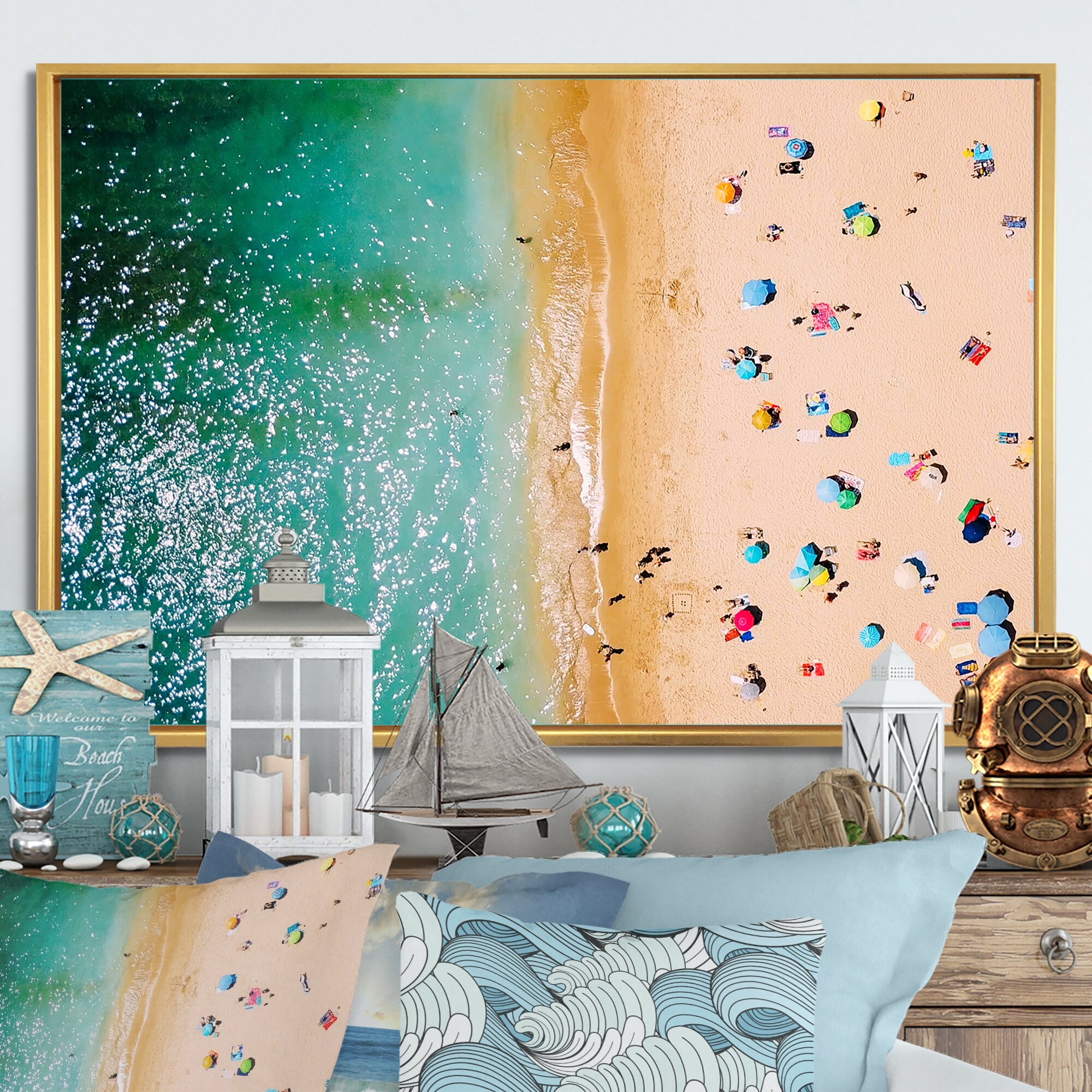 Designart "Aerial View of Tropical Beach II" Nautical & Coastal Framed Canvas Wall Art Print