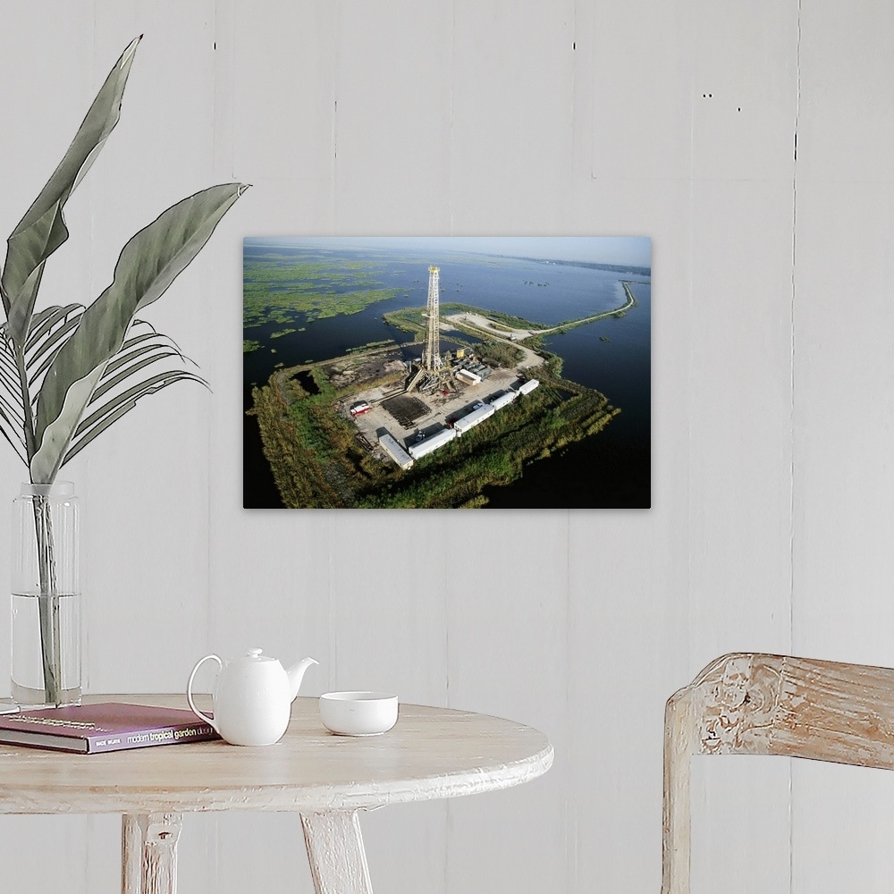 "Aerial View of Oil Drilling Platform in Marsh" Canvas Wall Art