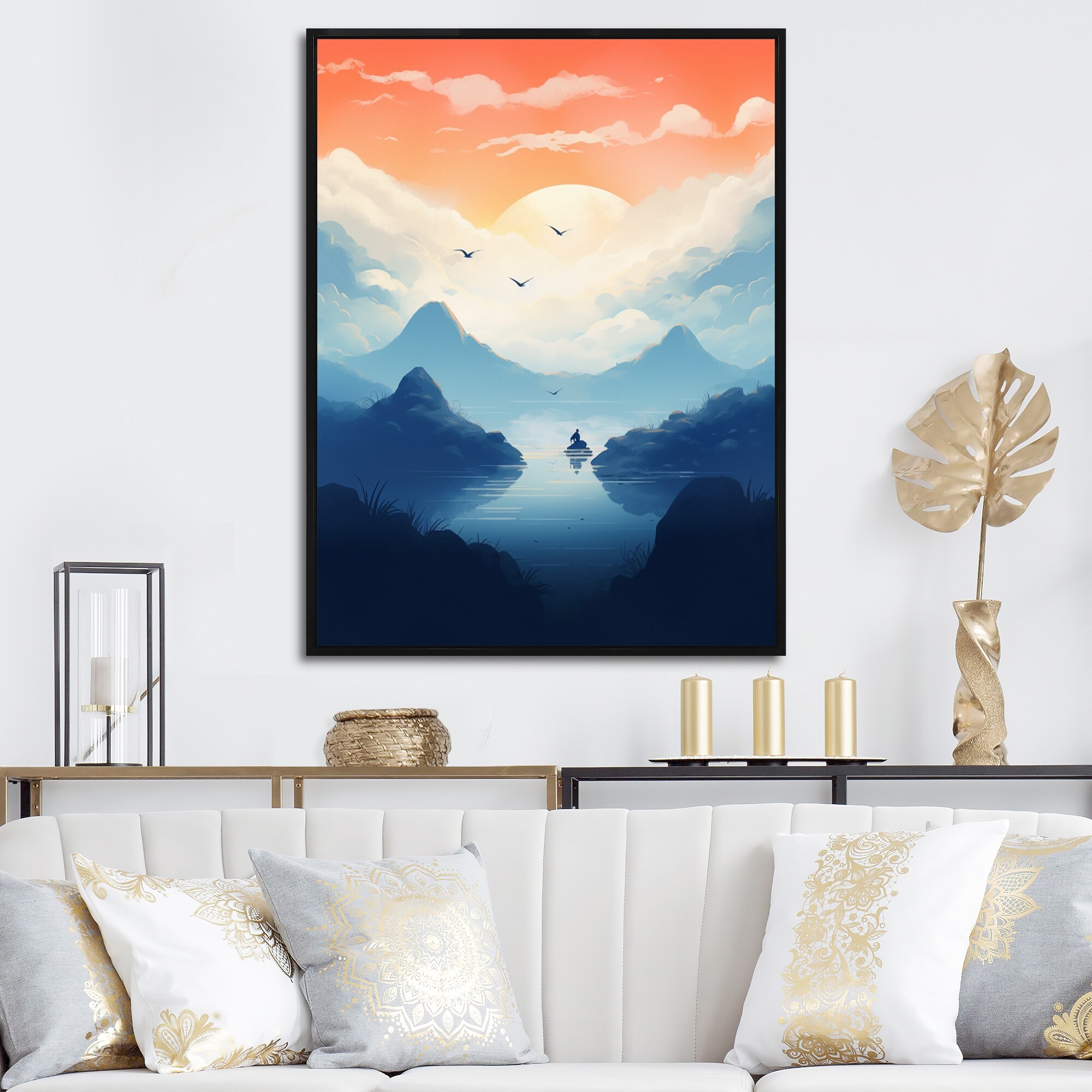 Designart "Aerial View of Bright Mountains Ii" Landscape Mountains Framed Canvas Wall Art