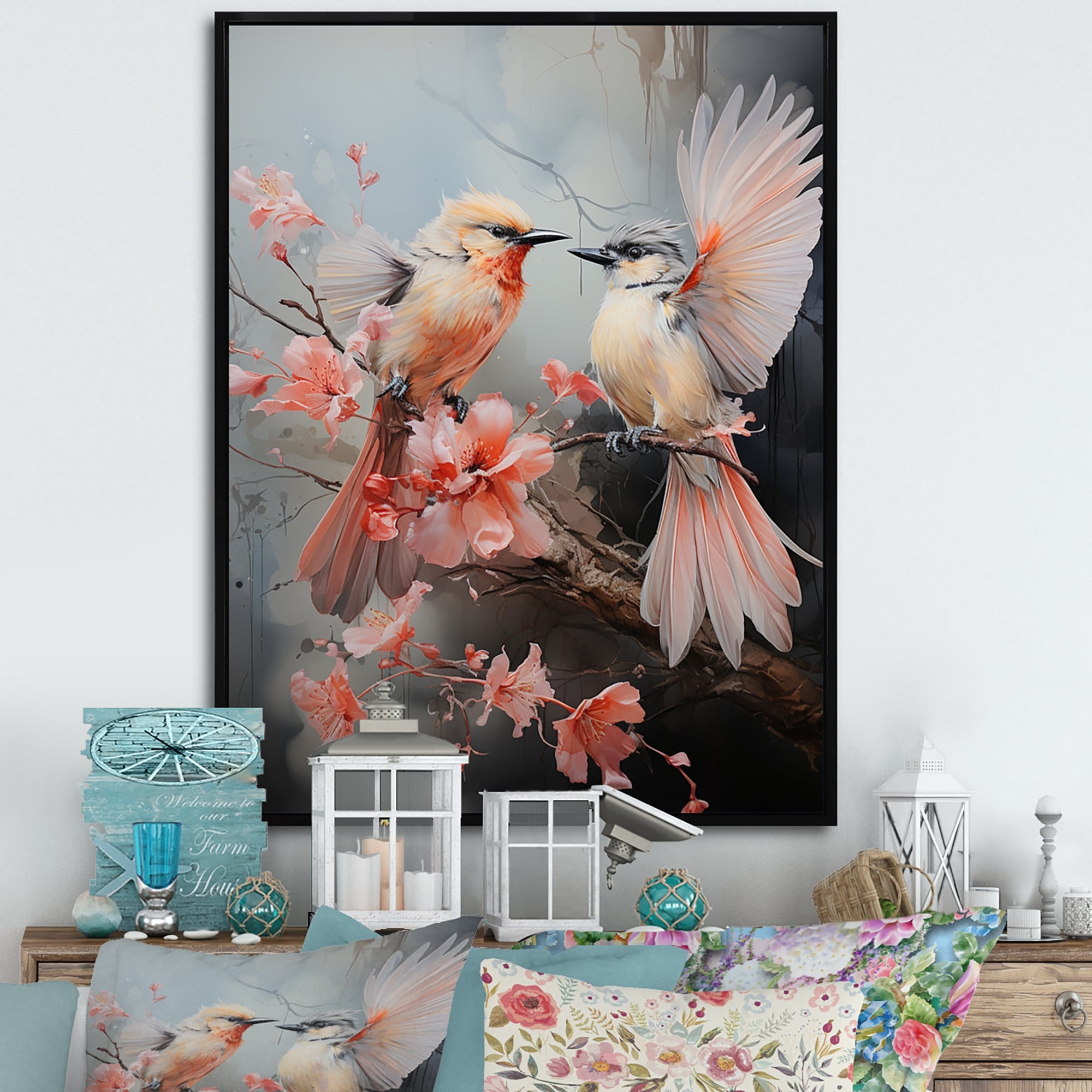 Designart "Bird Aerial Ballet I" Animals Bird Framed Canvas Art Print