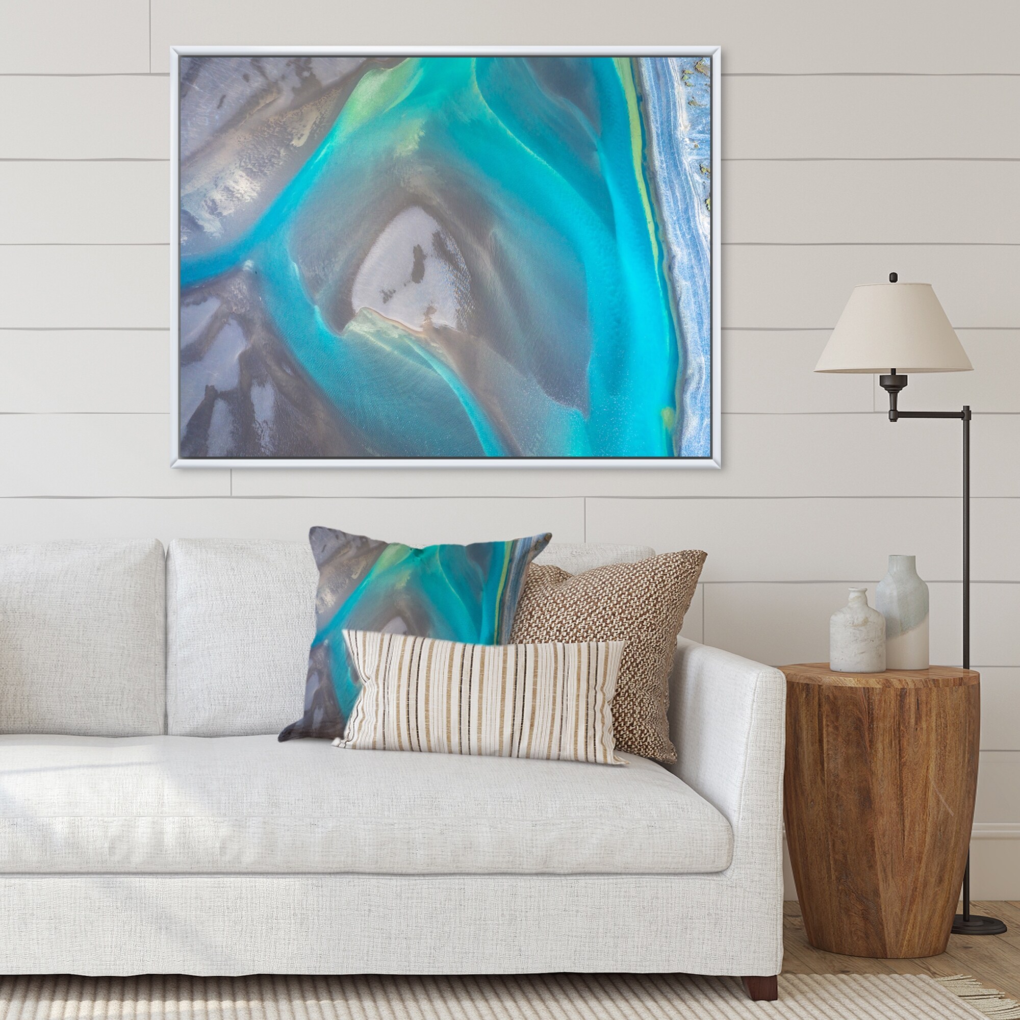 Designart "Aerial View of Glacier Rivers Iceland I" Traditional Framed Canvas Wall Art Print