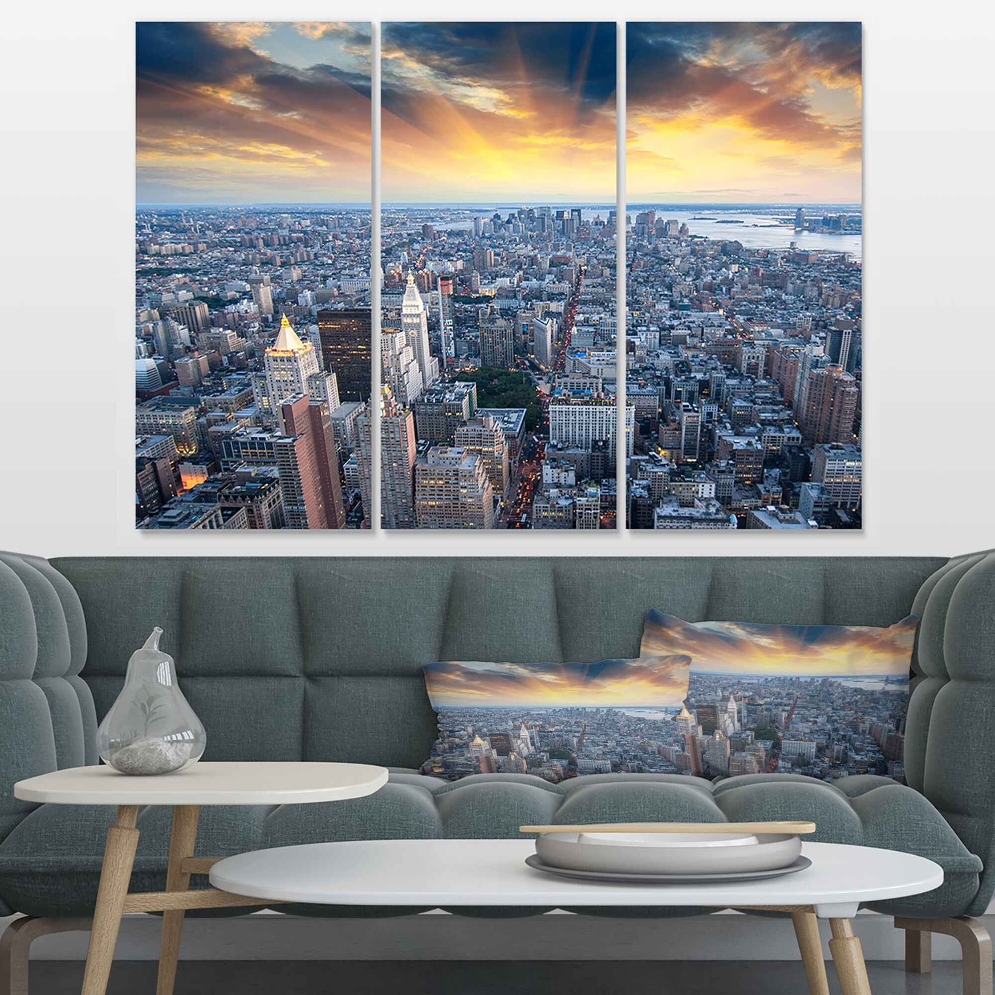 Designart "Aerial View of NYC Skyscrapers" Cityscape Photo Canvas Print - 36x28 - 3 Panels
