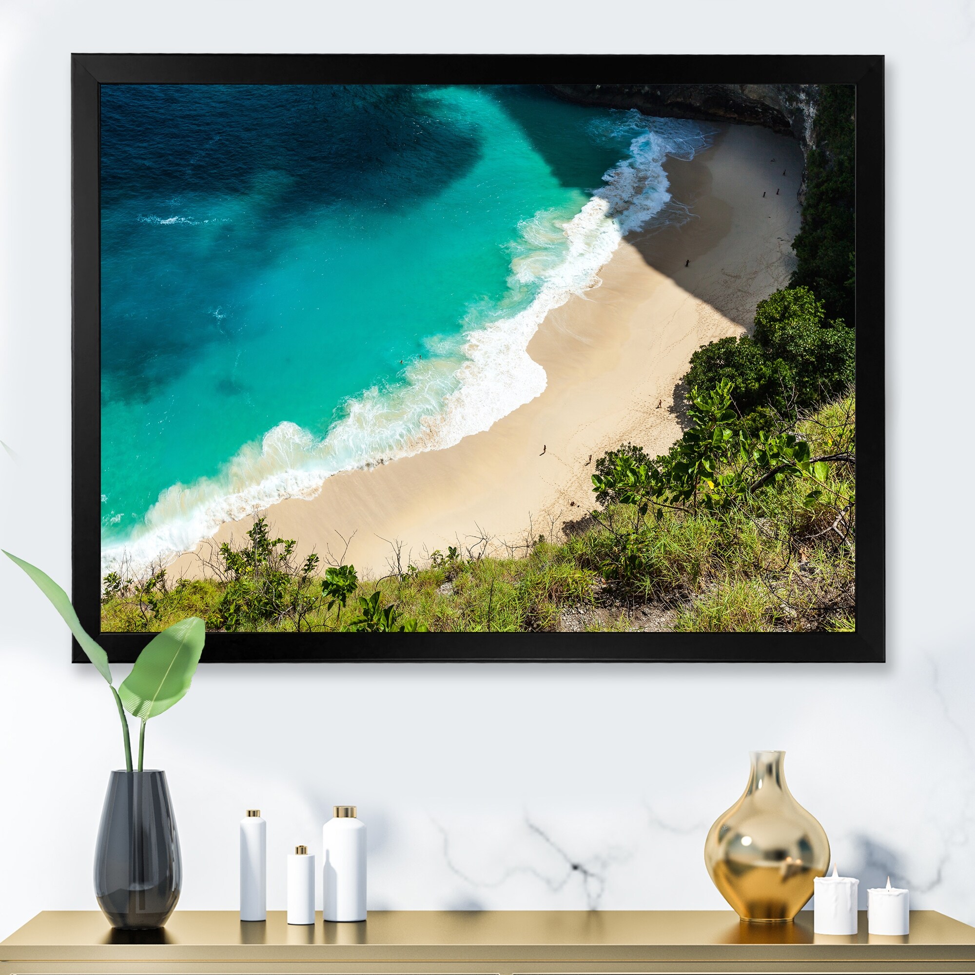 Designart "Aerial View of Tropical Beach III" Nautical & Coastal Framed Canvas Wall Art Print