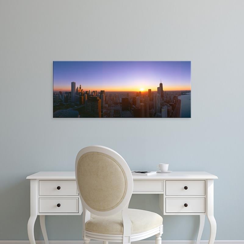 Easy Art Prints Panoramic Images's 'Chicago Sunset, Aerial View, Illinois' Premium Canvas Art