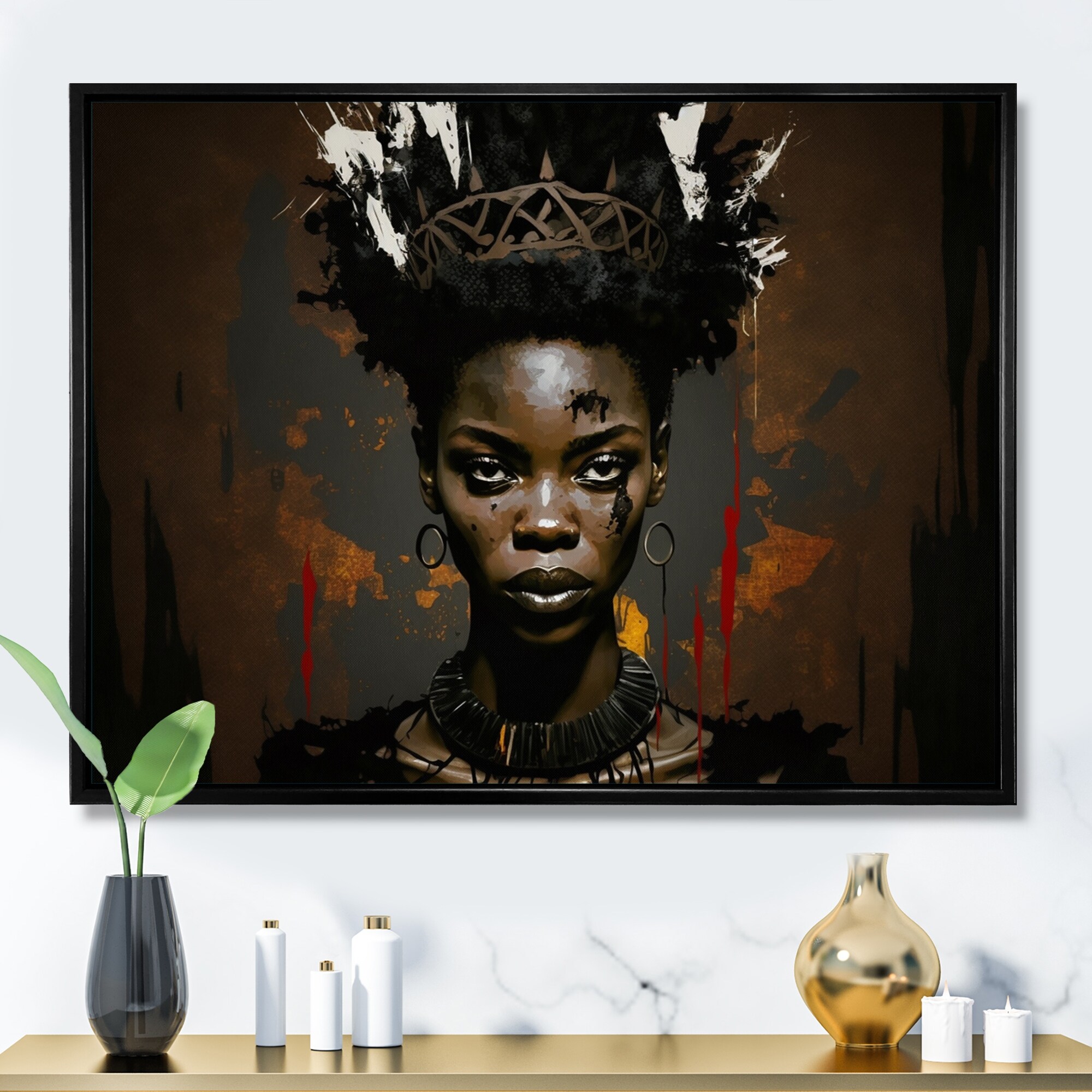 Designart "Queen African Woman in Winter" Contemporary Glam Framed Art Print