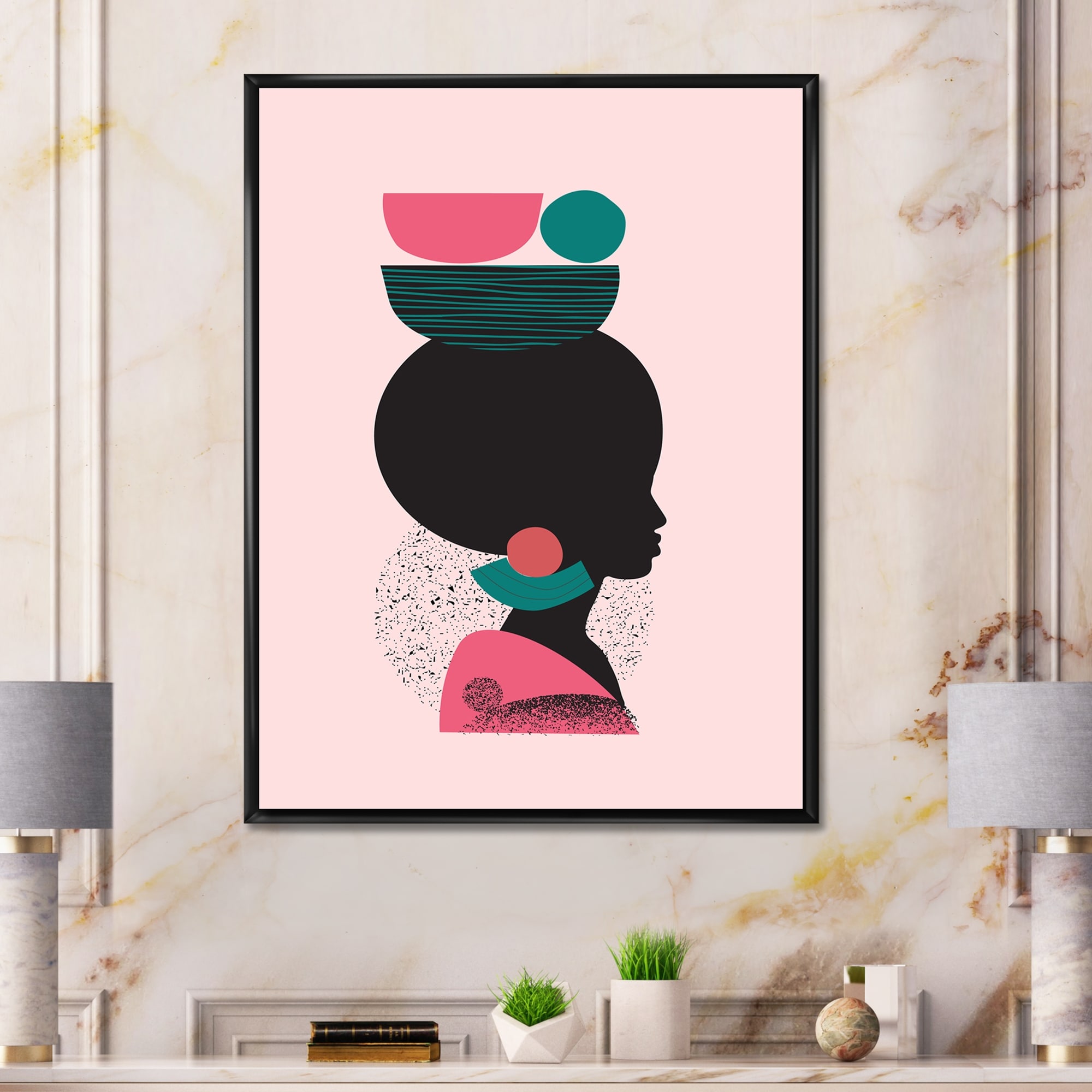Designart "Ethnic Geometric Silhouette of African American II" Modern Framed Canvas Wall Art Print