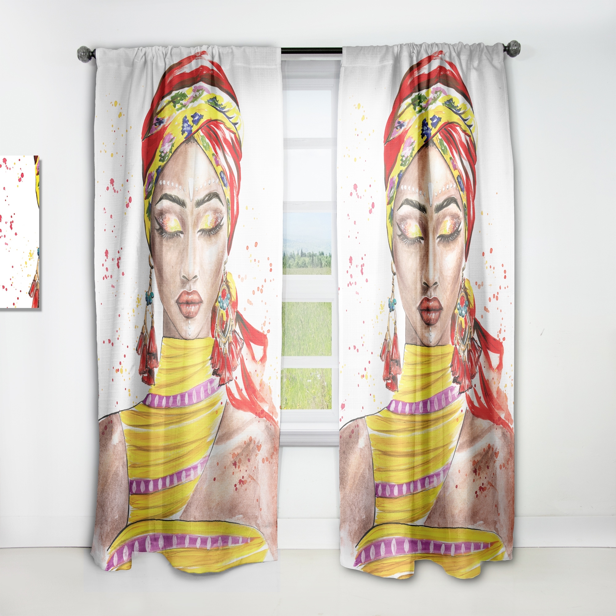 Designart 'Colorful Exotic Portrait of African American Woman' Traditional Curtain Single Panel