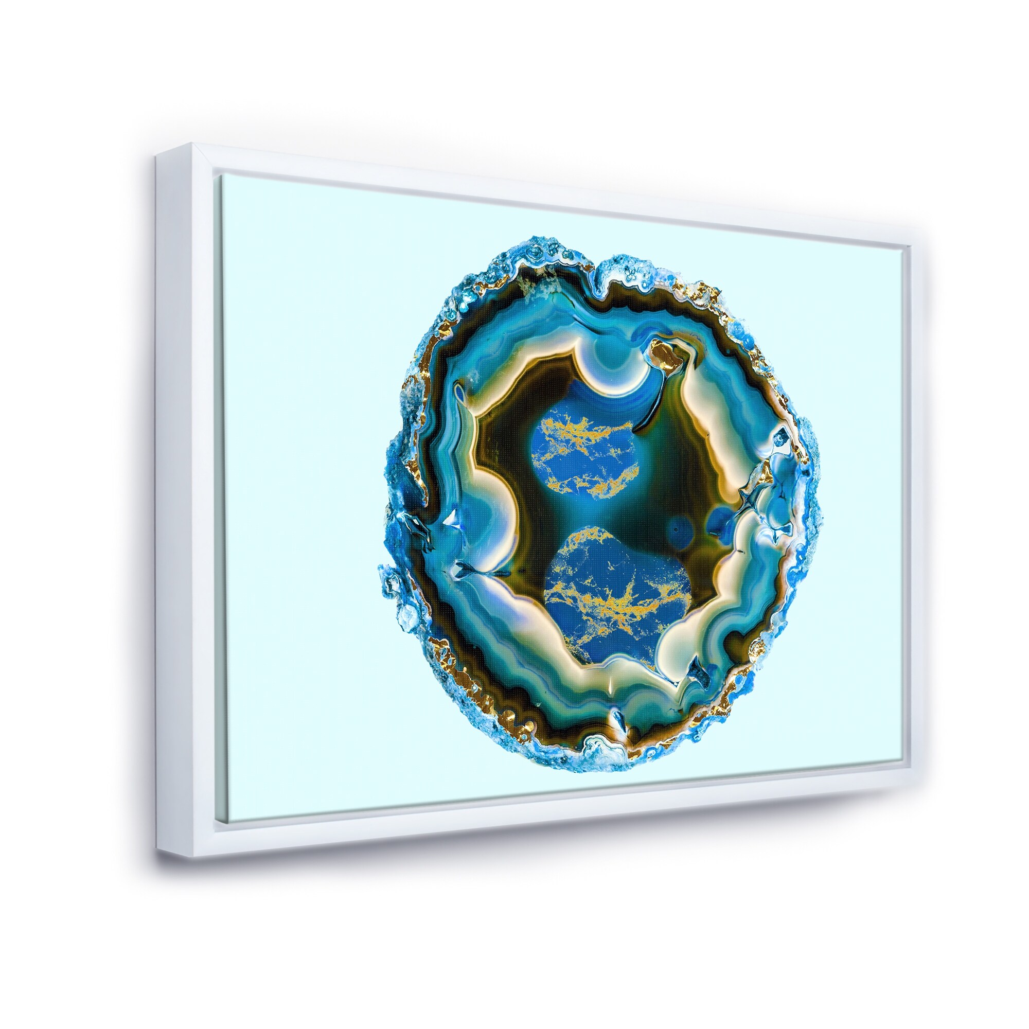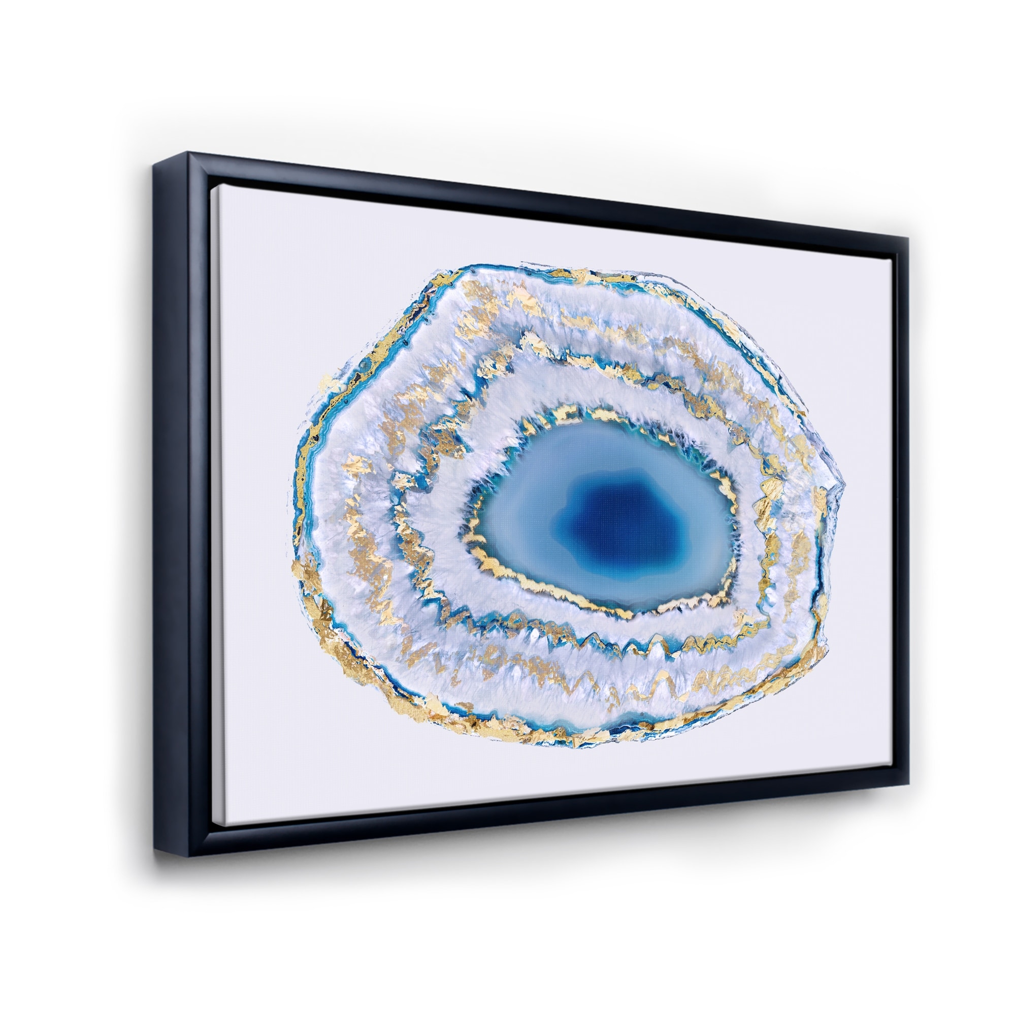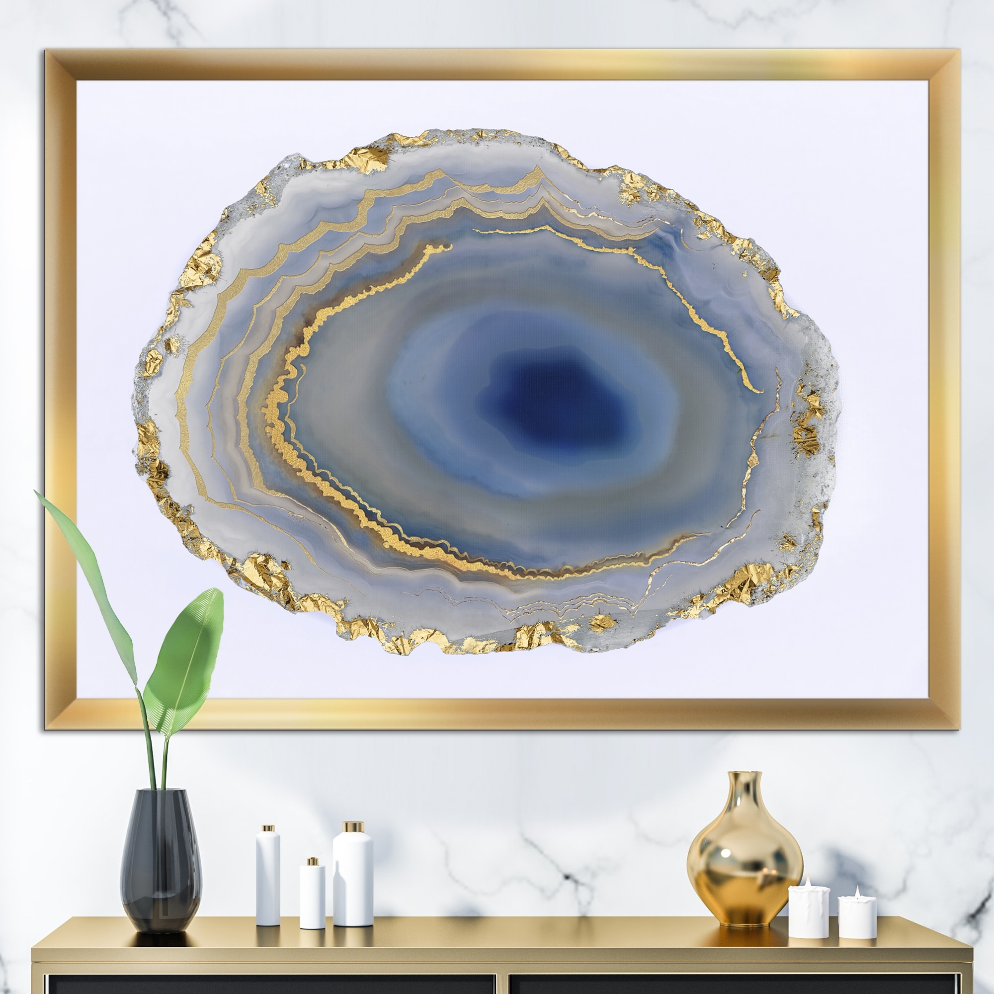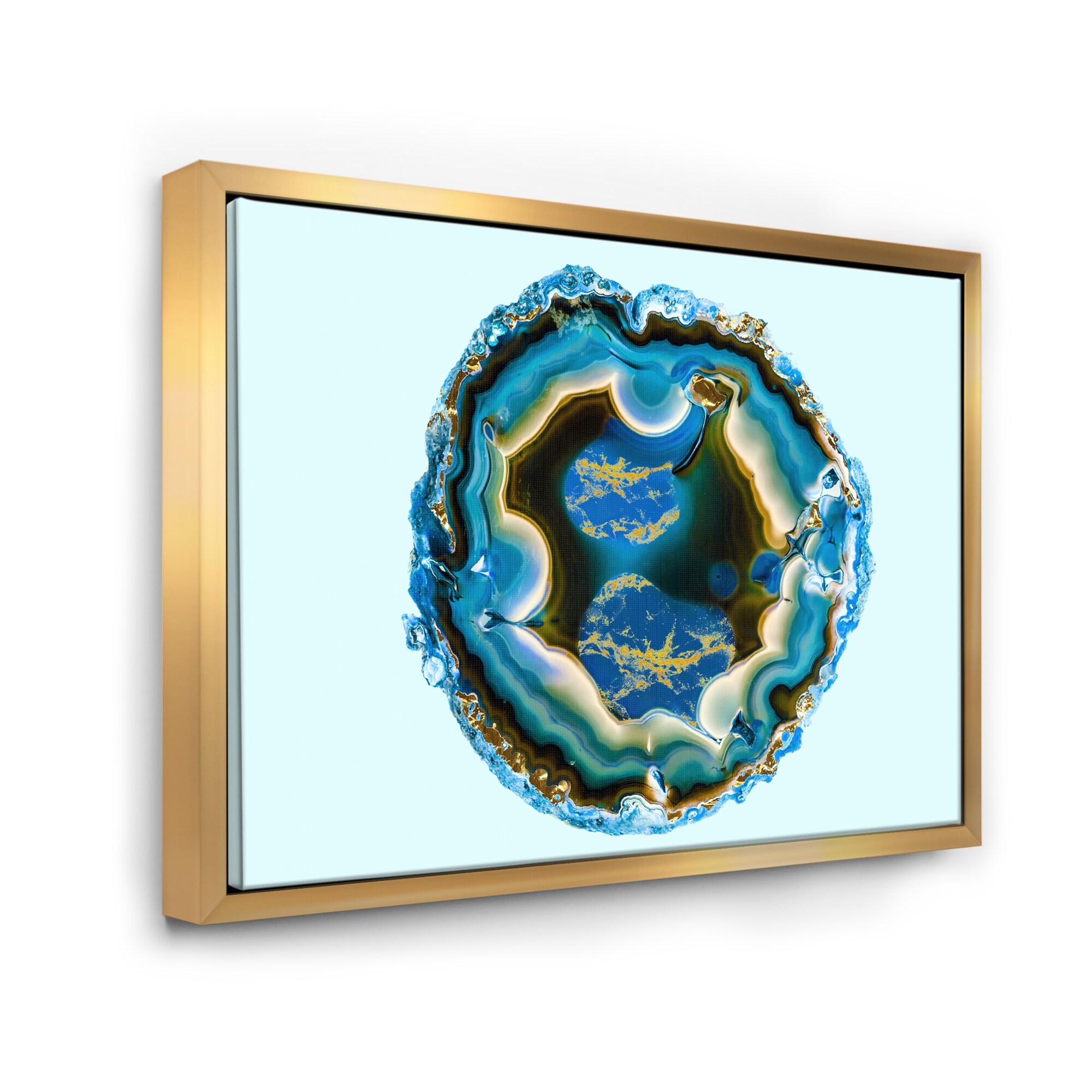 Designart "Golden Heart Blue Agate Stone" Glam Framed Canvas Wall Art Print
