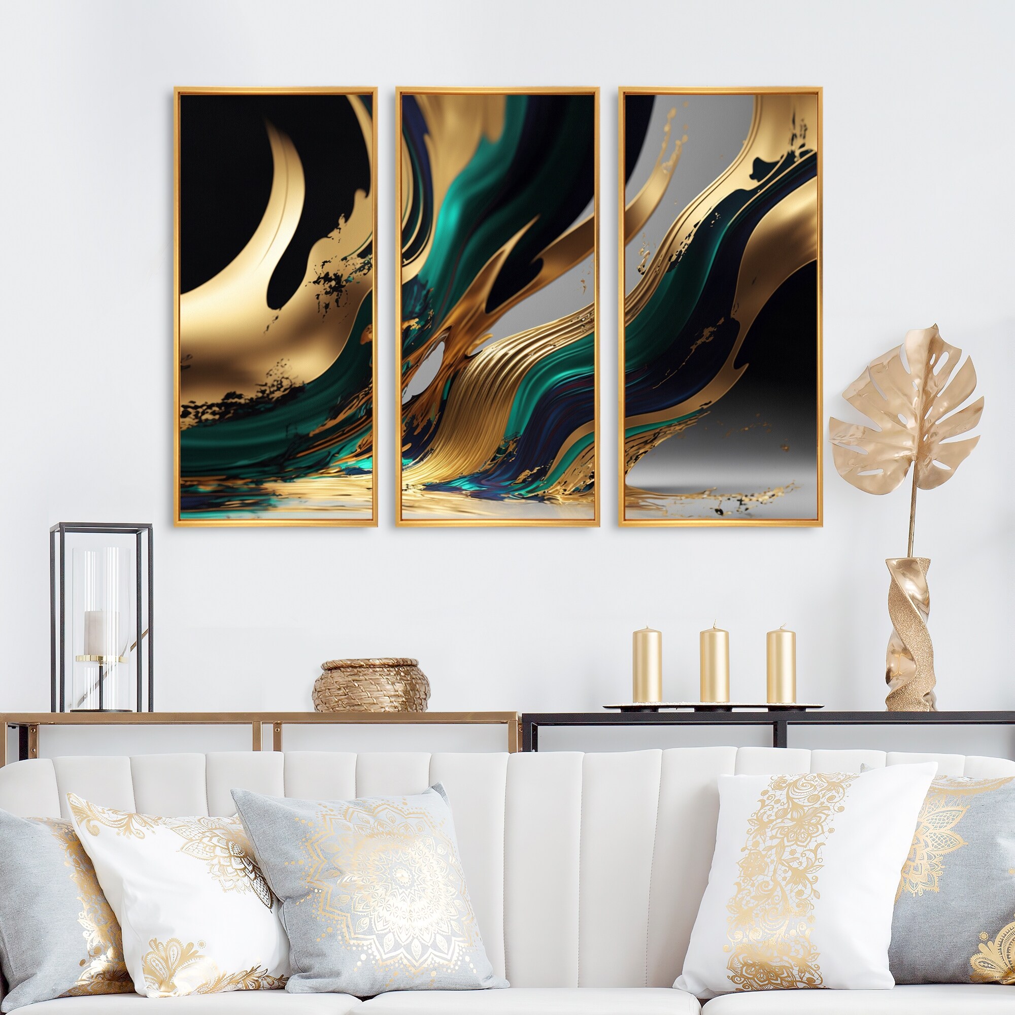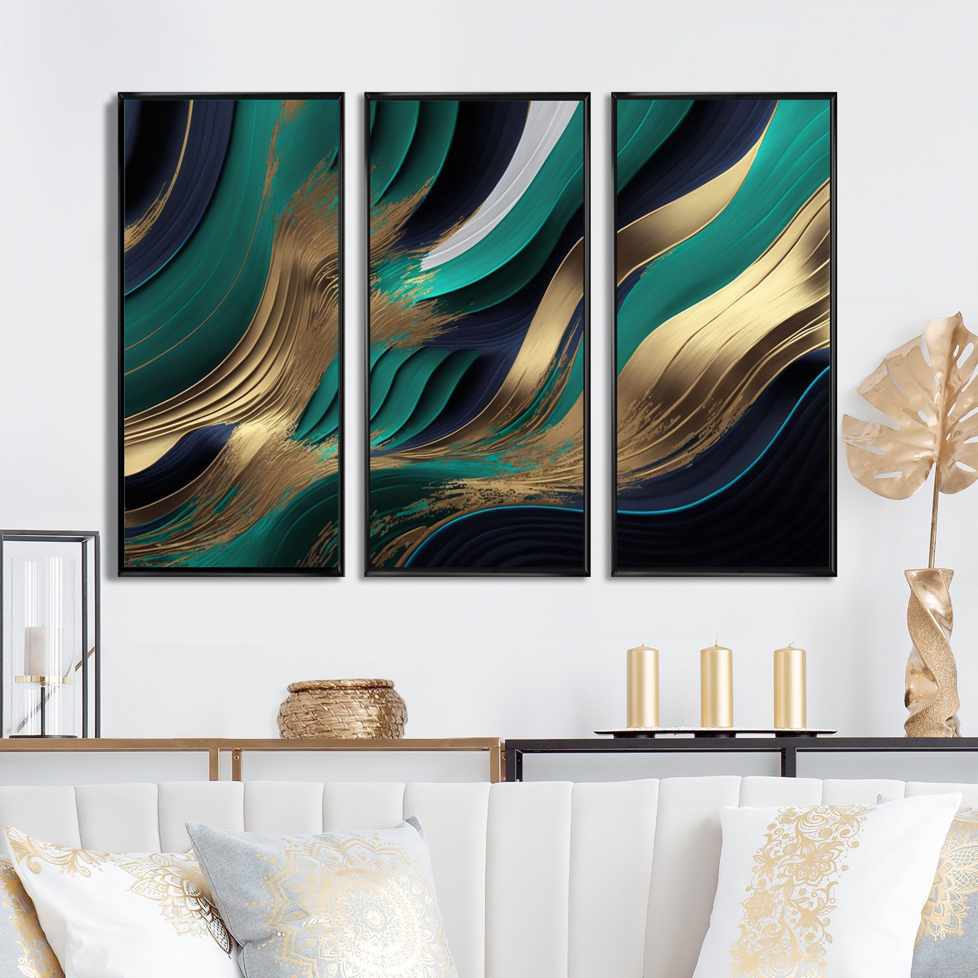 Designart "Green And Gold Agate IV" Transitional Framed Canvas Art Print - 3 Panels