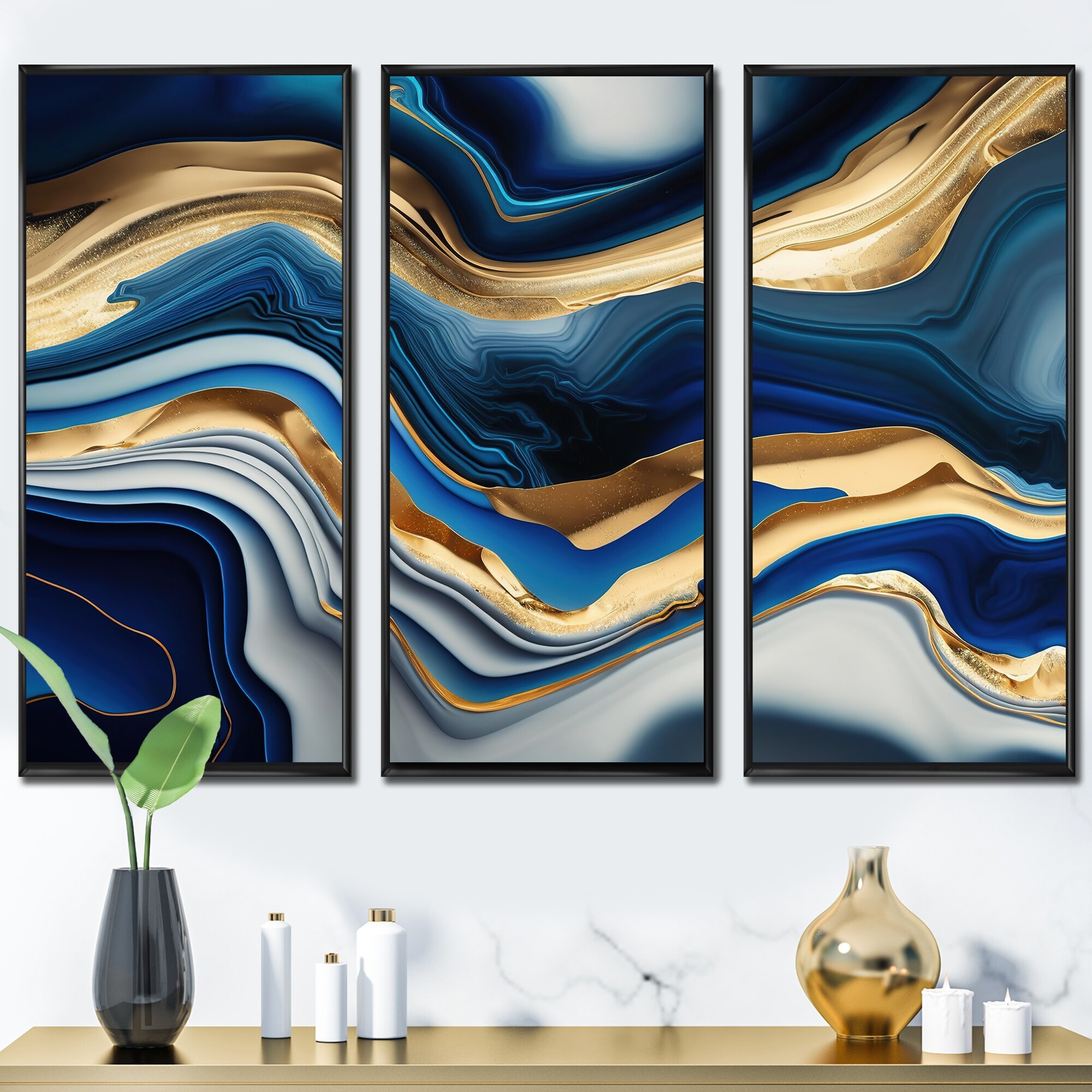 Designart "Vibrant Blue And Gold Agate II" Transitional Framed Canvas Art Print - 3 Panels