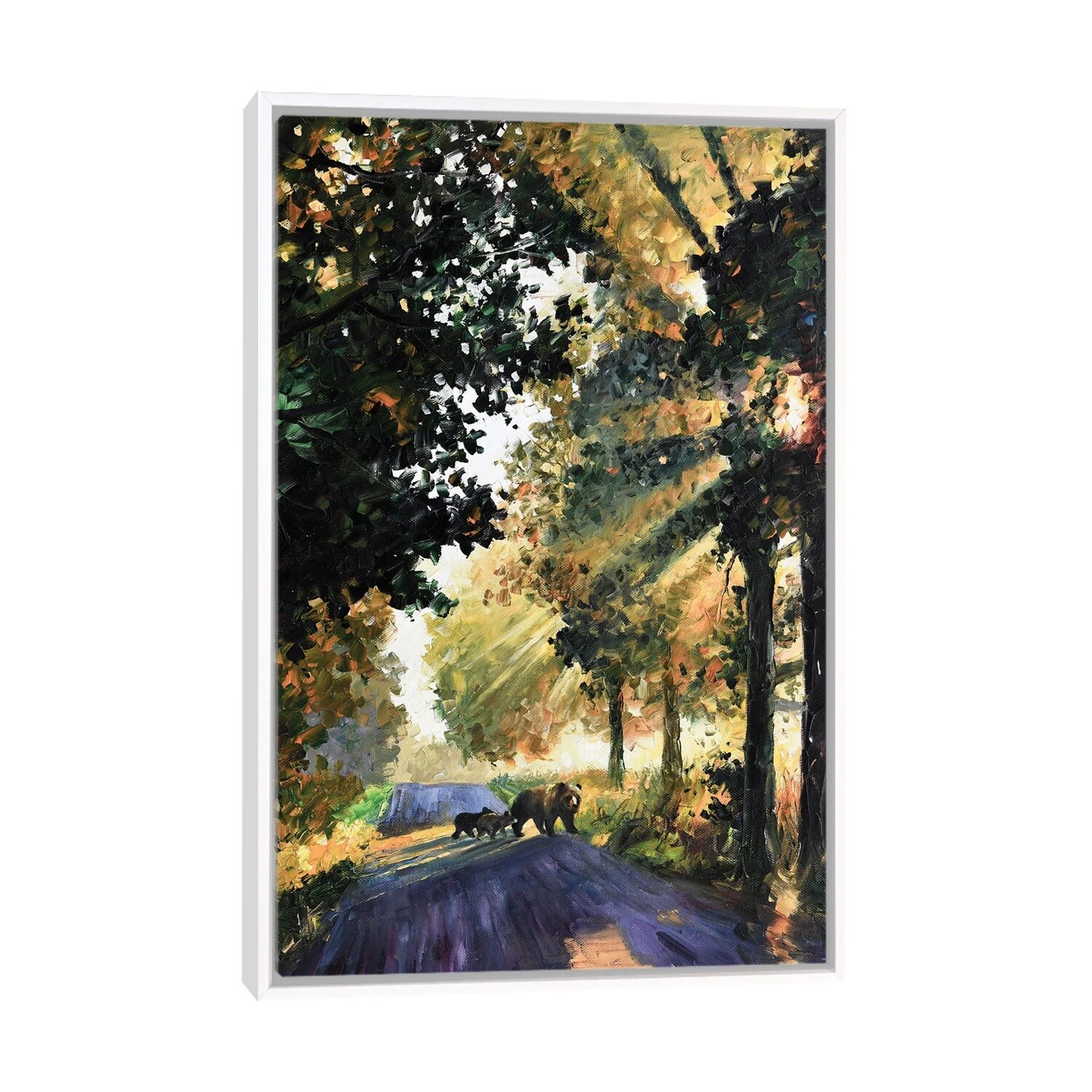 iCanvas "Bear Family Crossing the Road" by Daniel Wall Framed