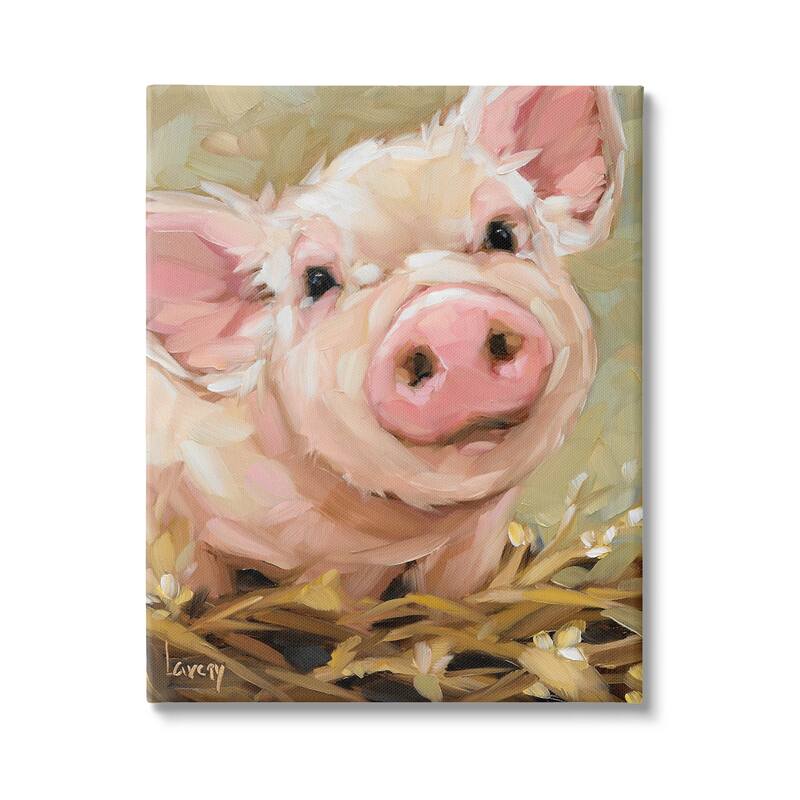 Stupell Industries Happy Pig Farm Animal Portrait Canvas Wall Art by Andrea Lavery
