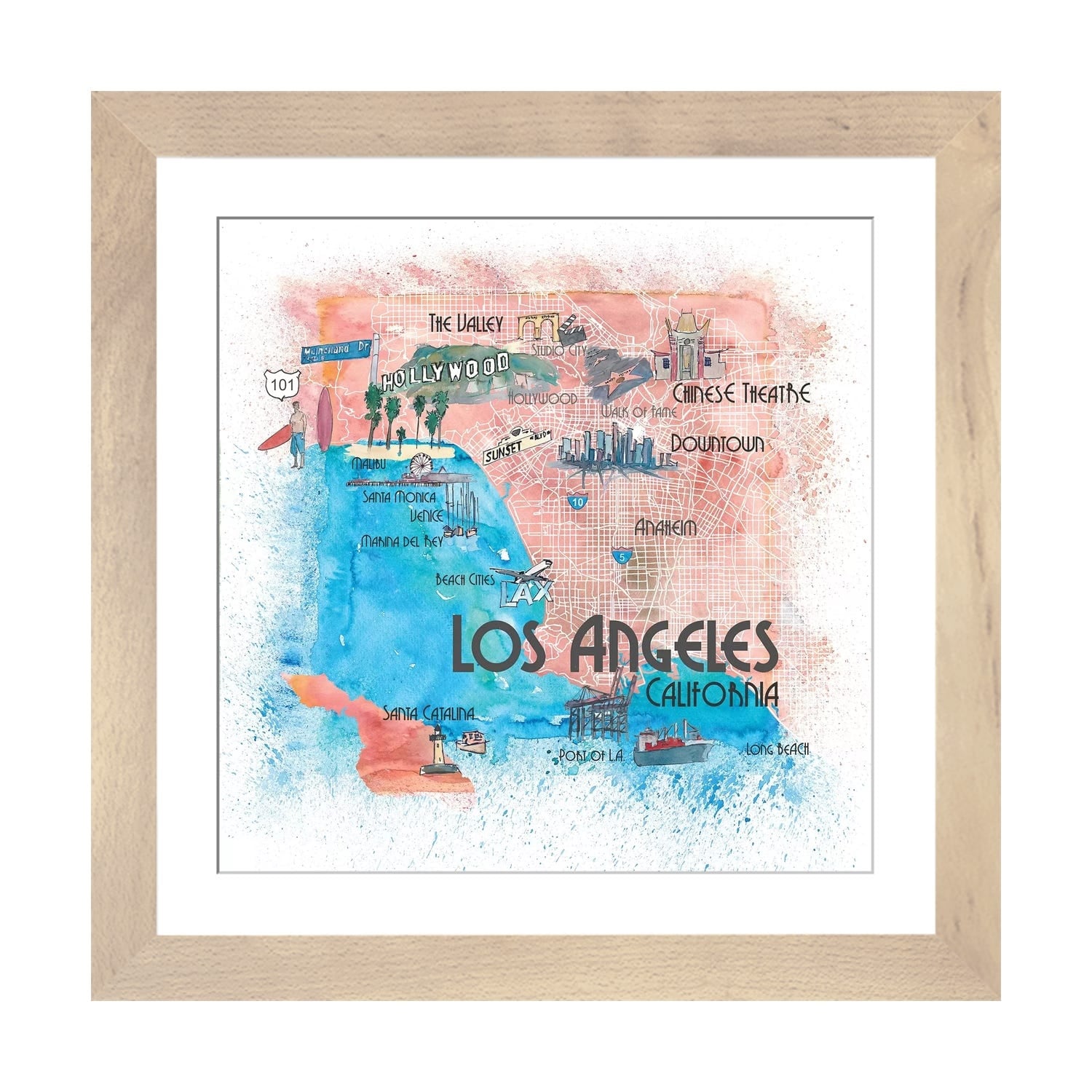 iCanvas "Los Angeles USA Illustrated Map" by Markus & Martina Bleichner