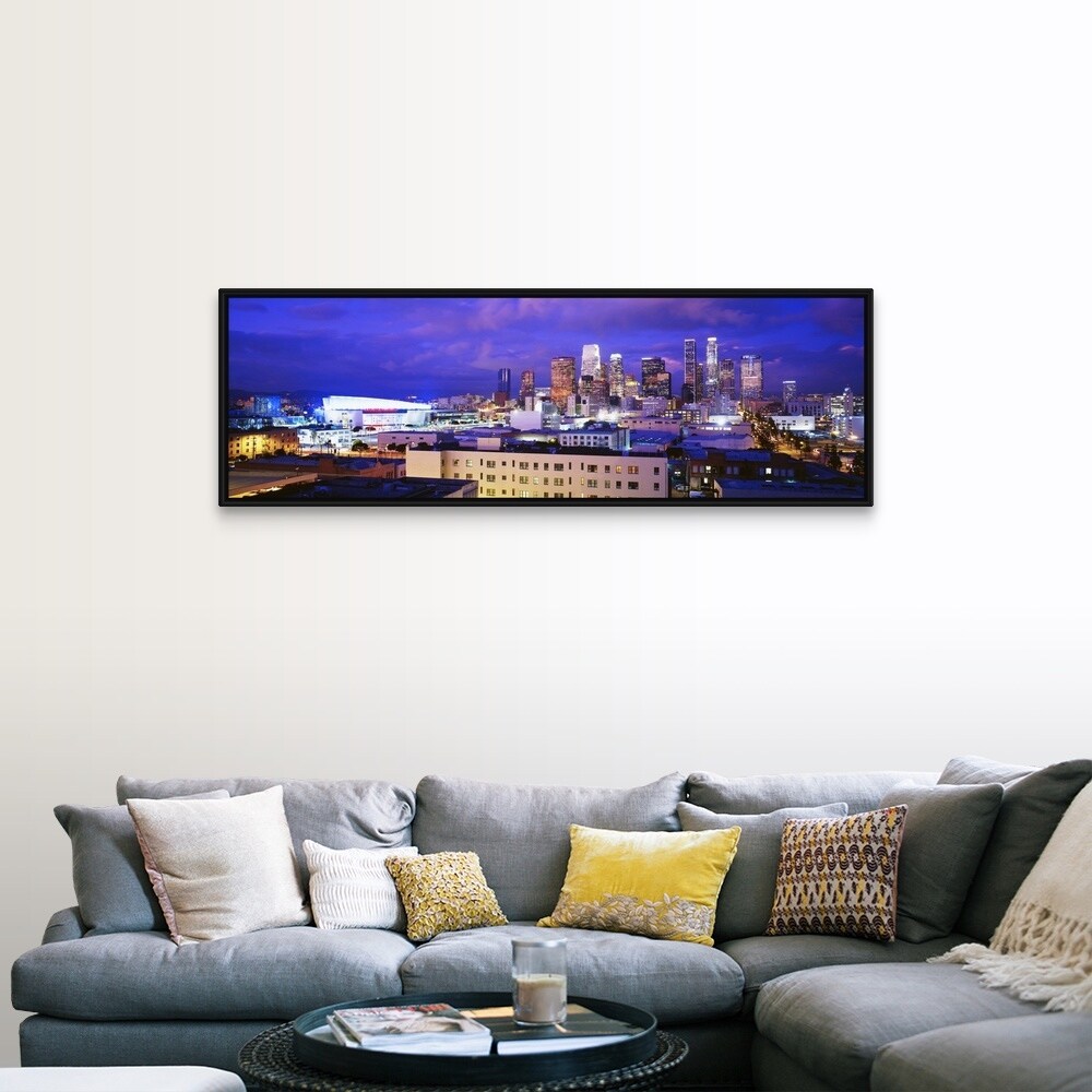 "California, Los Angeles, High angle view of the city at night" Black Float Frame Canvas Art