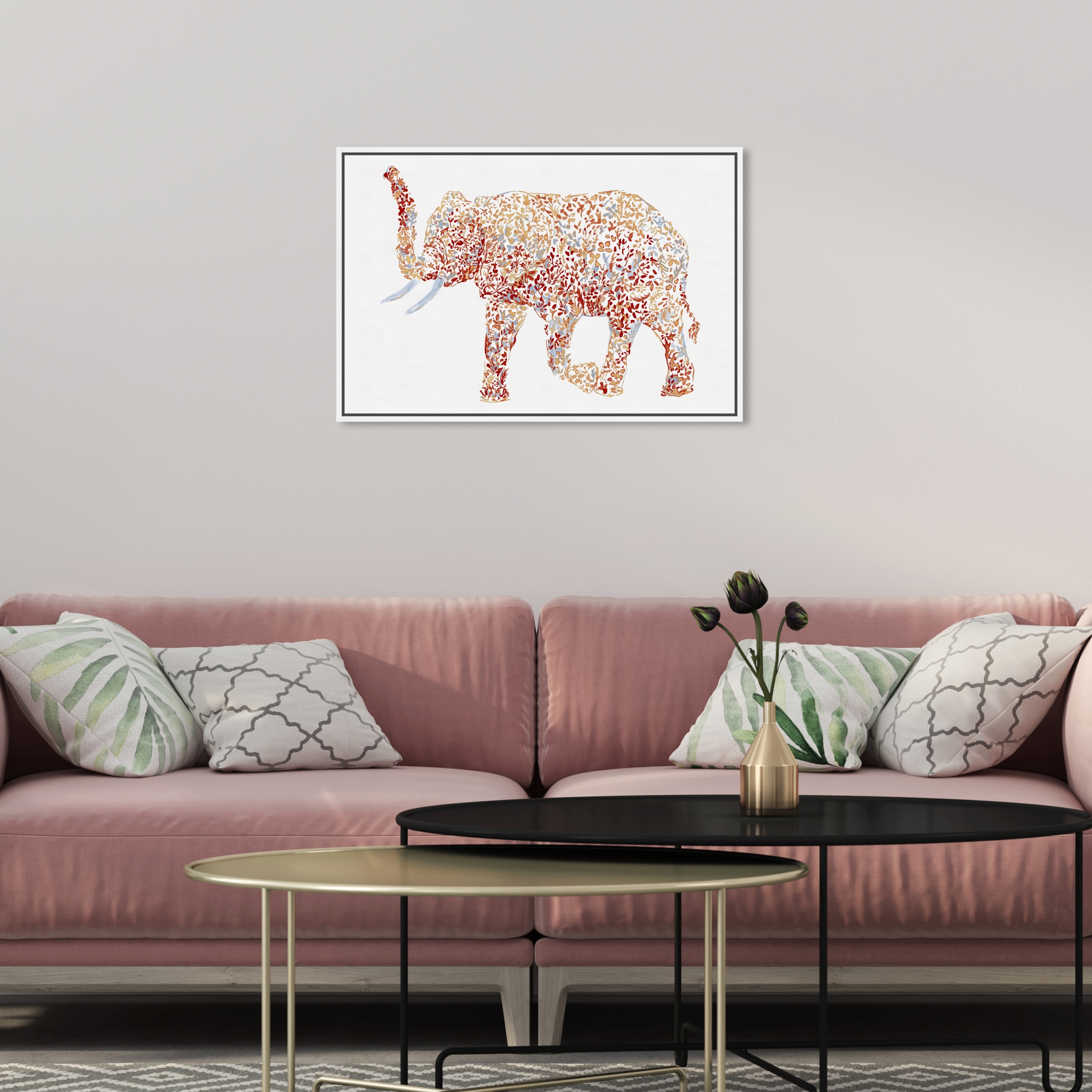 Oliver Gal 'Fall Floral Elephant' Animals Wall Art Framed Canvas Print Zoo and Wild Animals - Red, Yellow