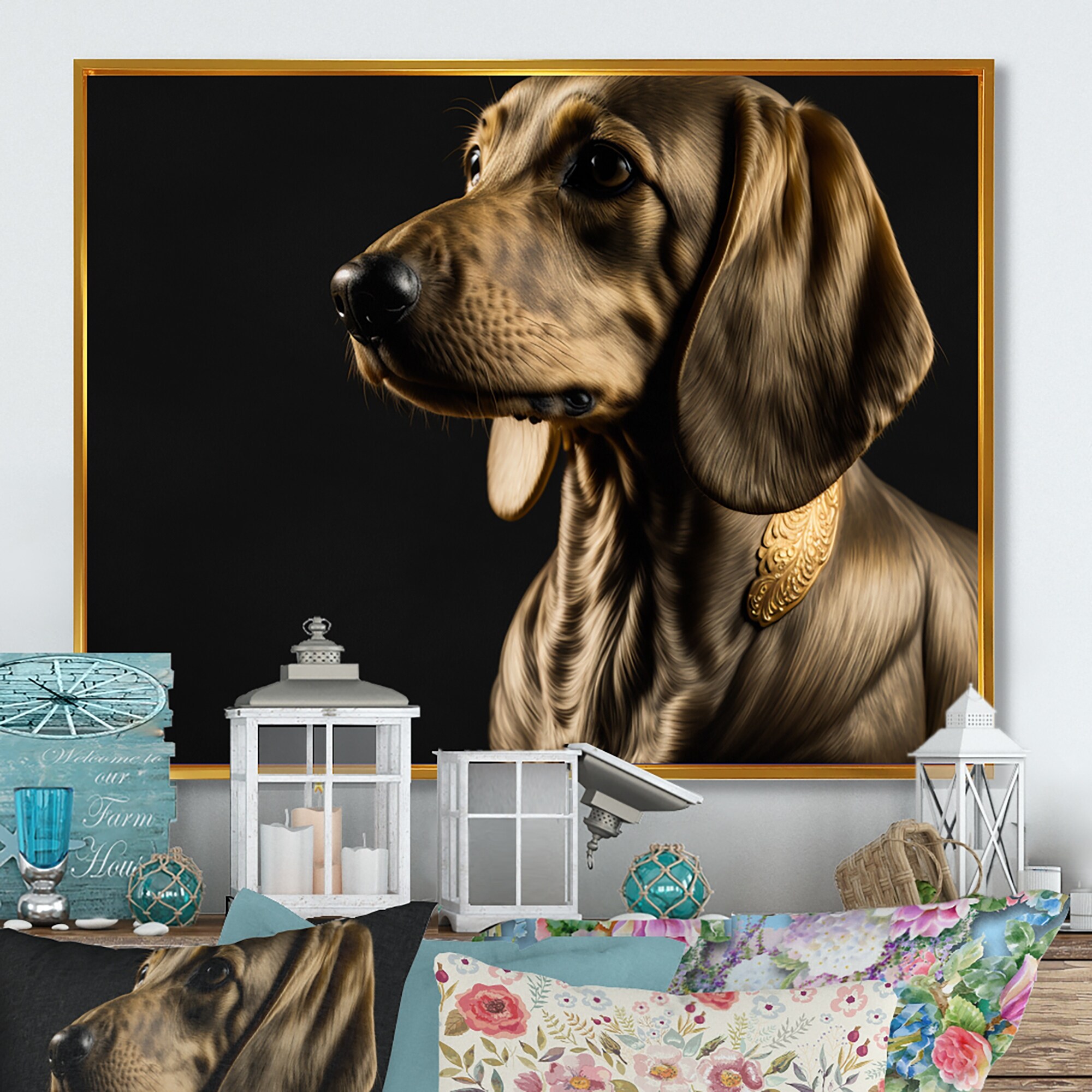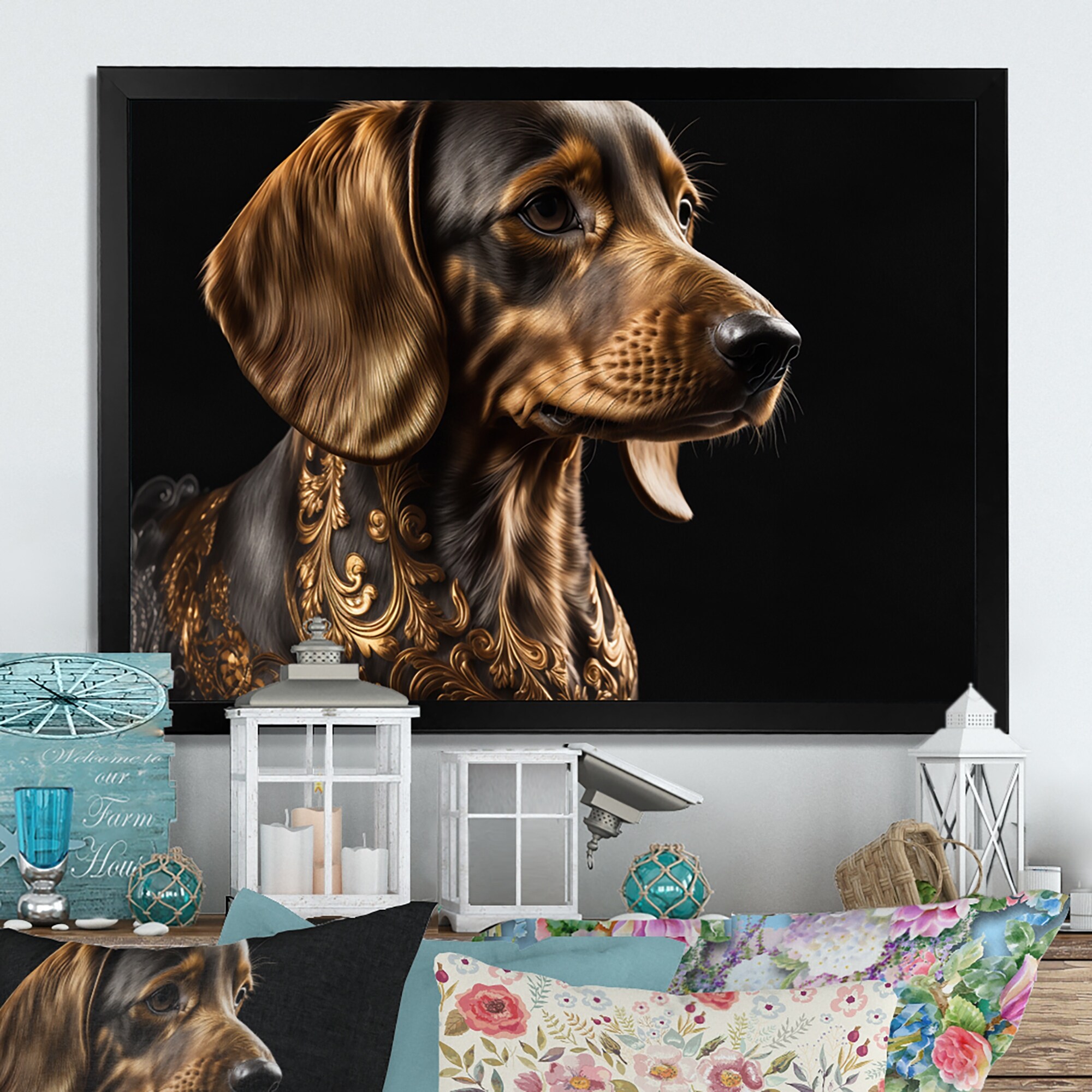 Designart "Regal Daschund Portrait" Animals Framed Canvas Wall Art Print