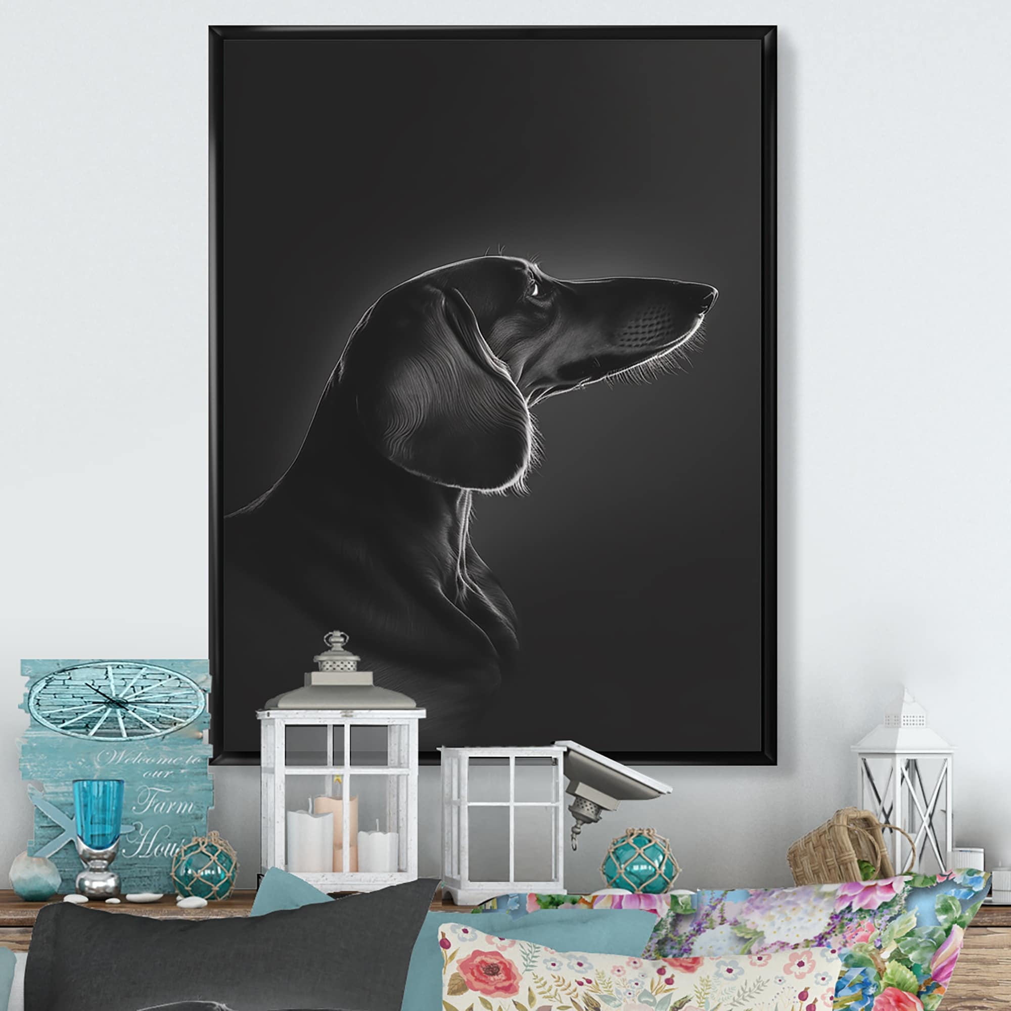 Designart "Portrait Of a Black Dachshund III" Animals Framed Canvas Wall Art Print