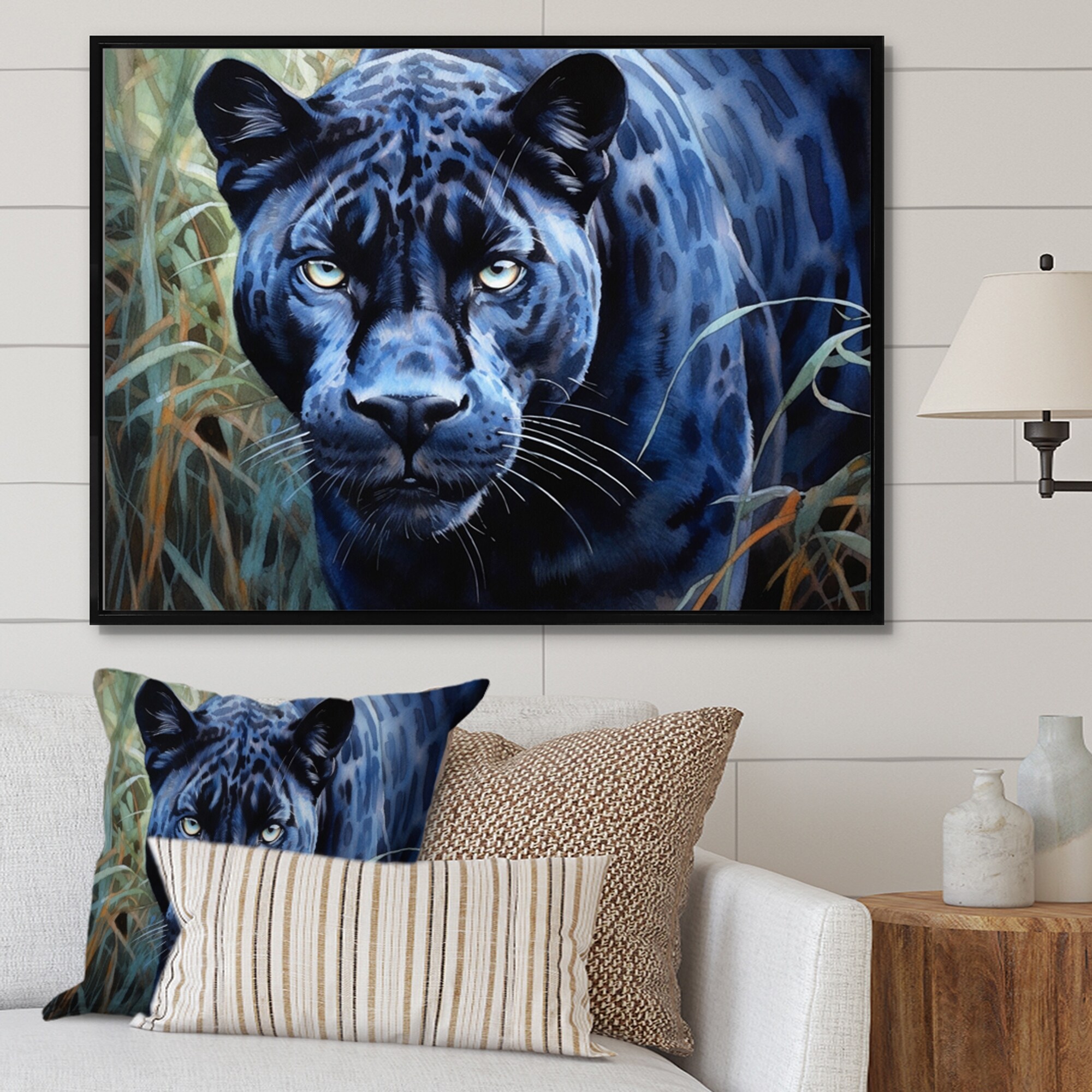 Designart "Panther'S Gaze I" Animals Panther Framed Canvas Art Print