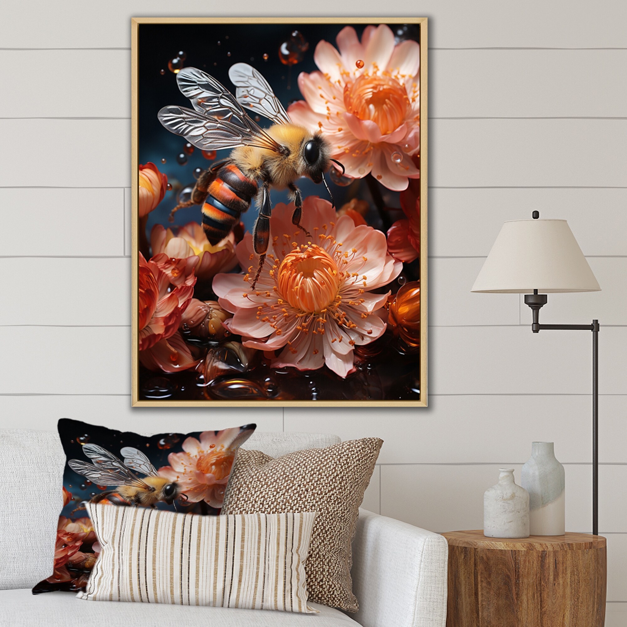 Designart "Colorful Bee IV" Animals Bee Framed Canvas Wall Art