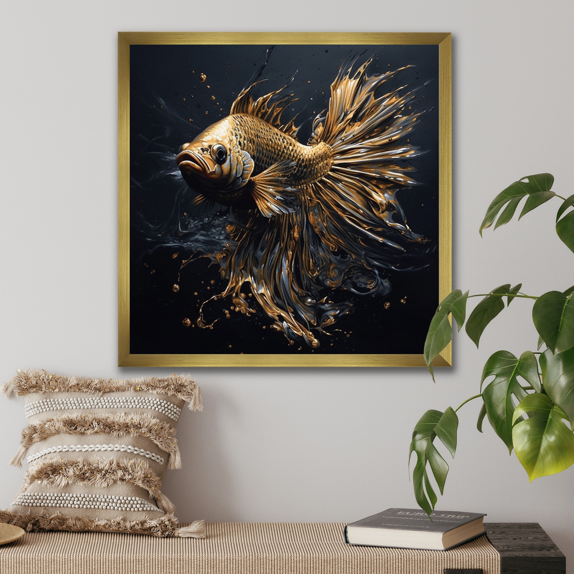 Designart "Gold Fish in the Ocean I" Animal Fish Framed Canvas Prints