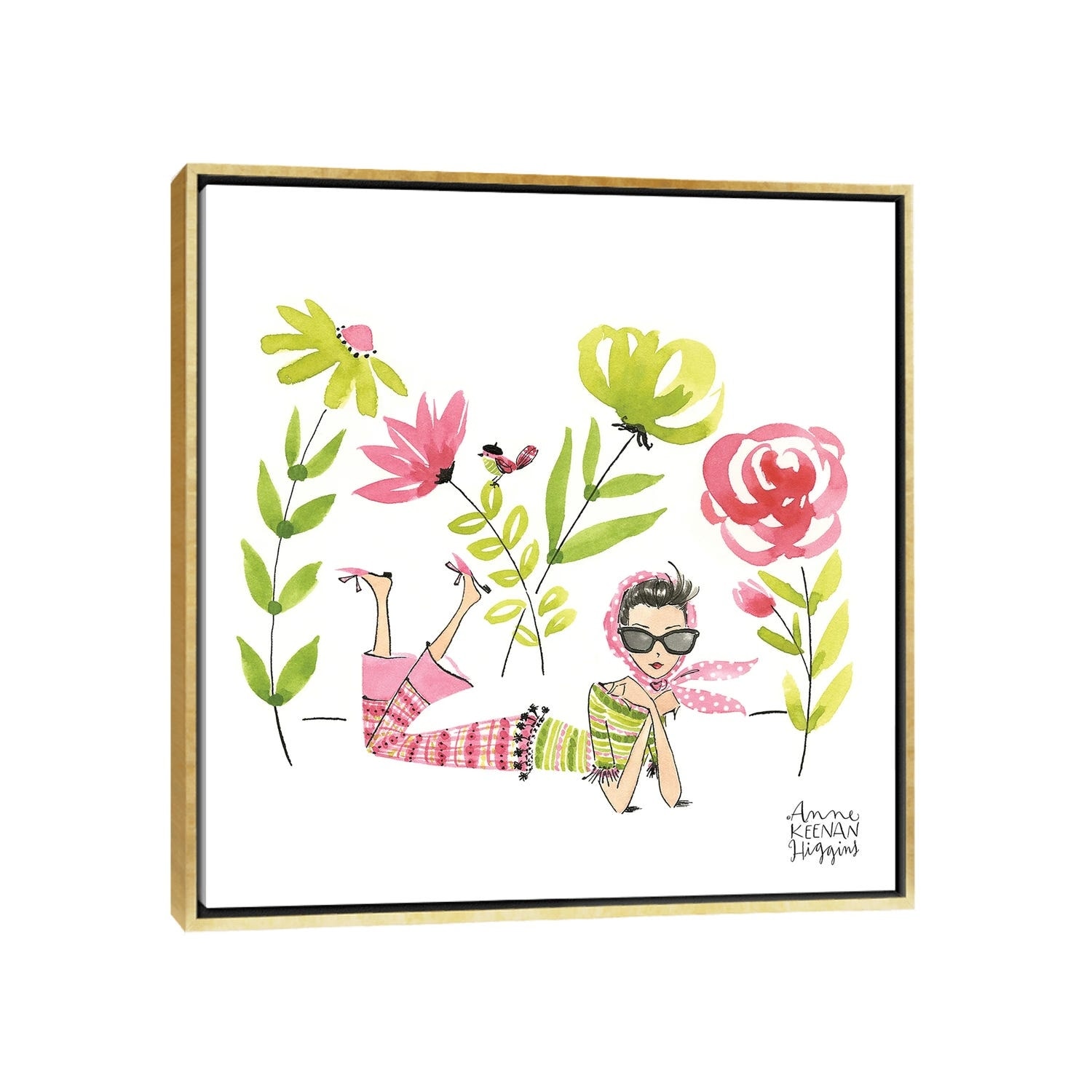 iCanvas "Woman Lying in Big Flowers" by Anne Keenan Higgins Framed Canvas Print