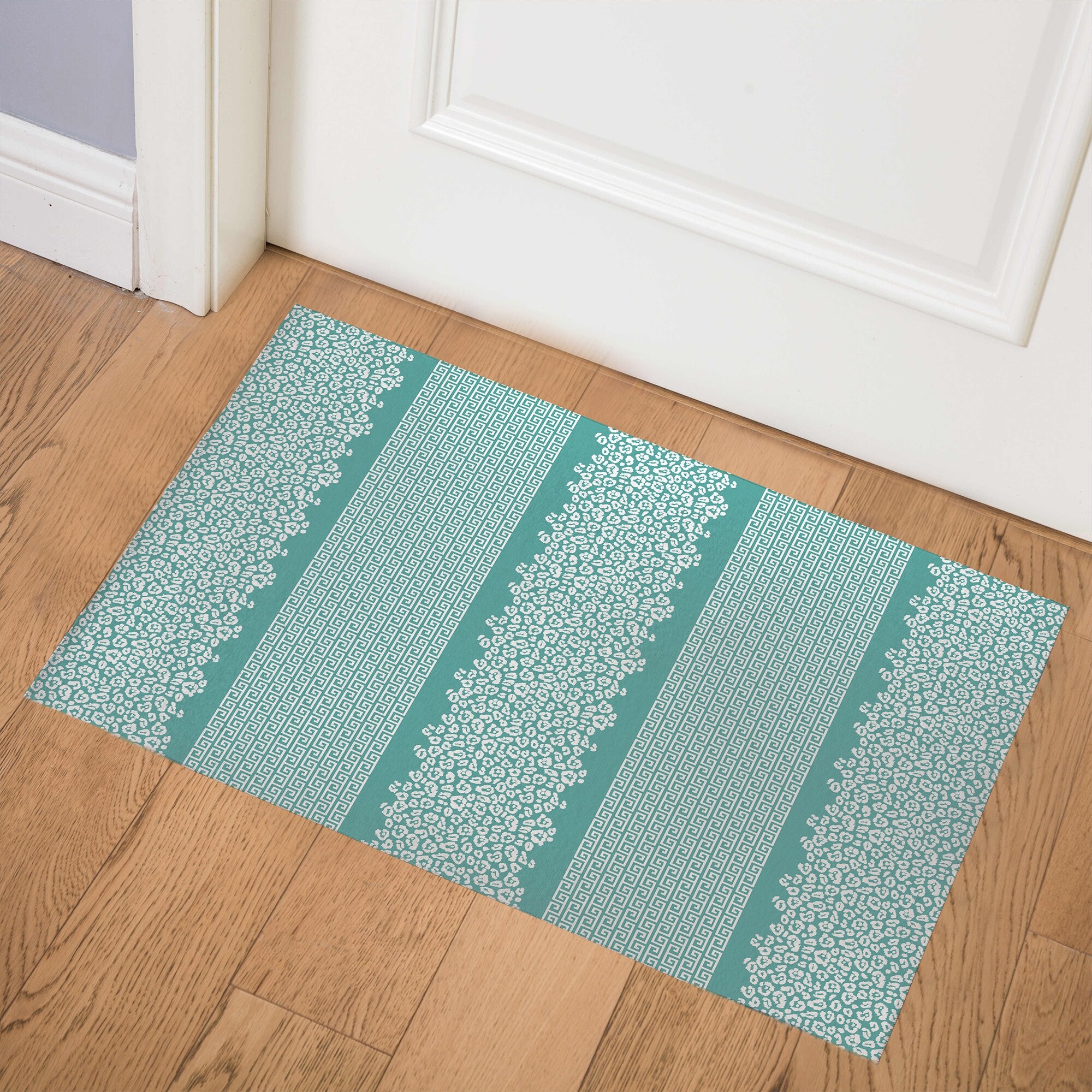 LEOPARD KEY AQUA & WHITE Indoor Floor Mat By Kavka Designs