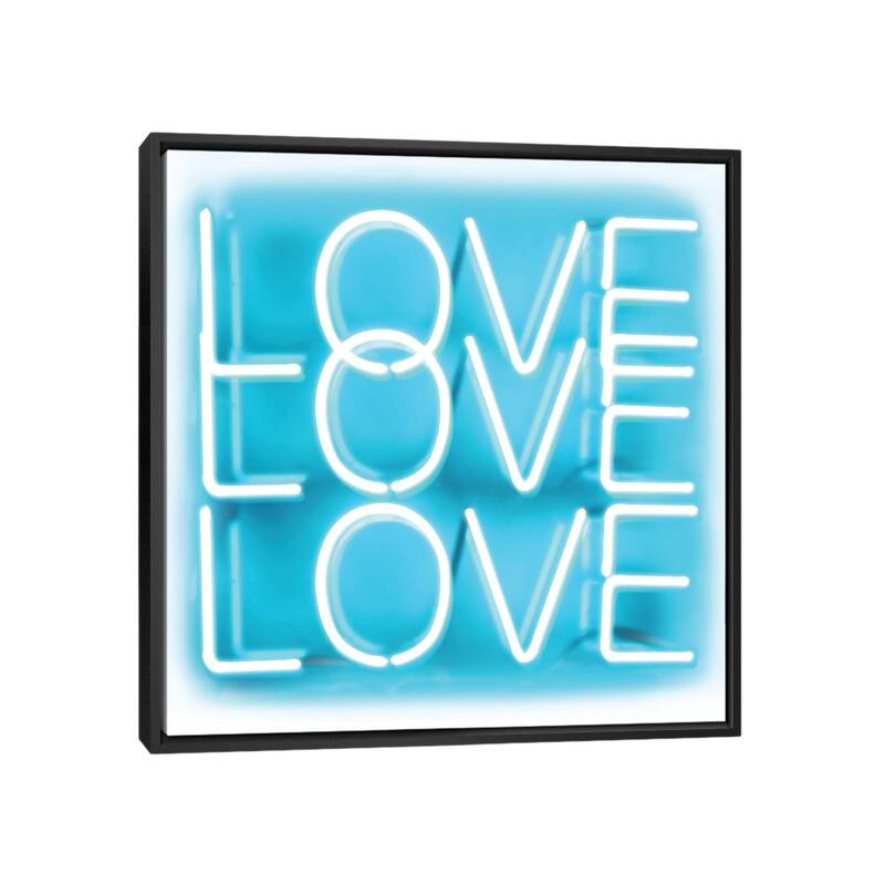iCanvas "Neon Love Love Love Aqua on White" by Hailey Carr Framed Canvas Print