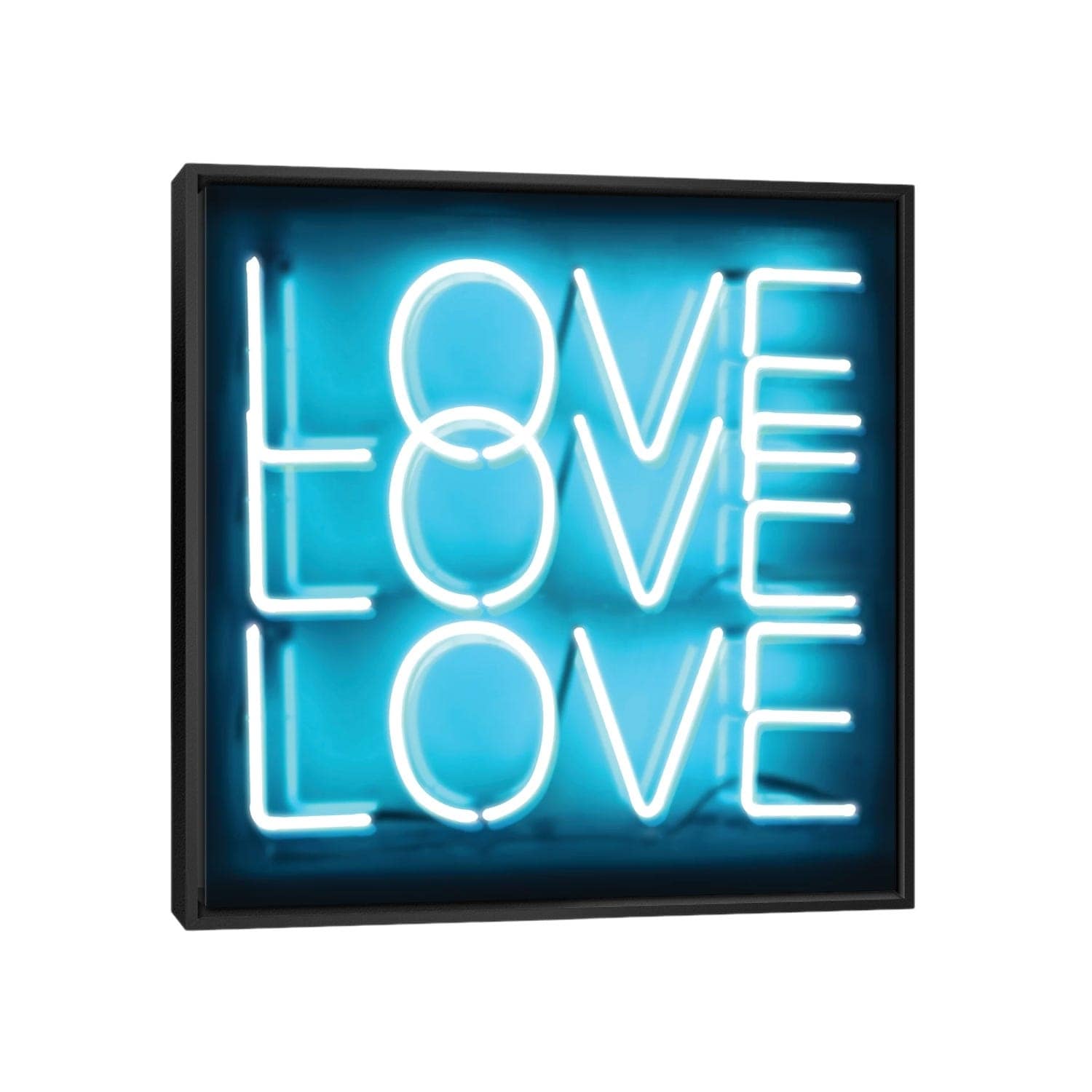 iCanvas "Neon Love Love Love Aqua on Black" by Hailey Carr Framed Canvas Print