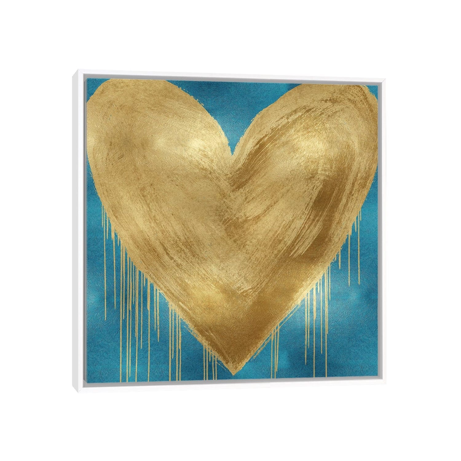 iCanvas "Big Hearted Gold on Aqua" by Lindsay Rodgers Framed Canvas Print