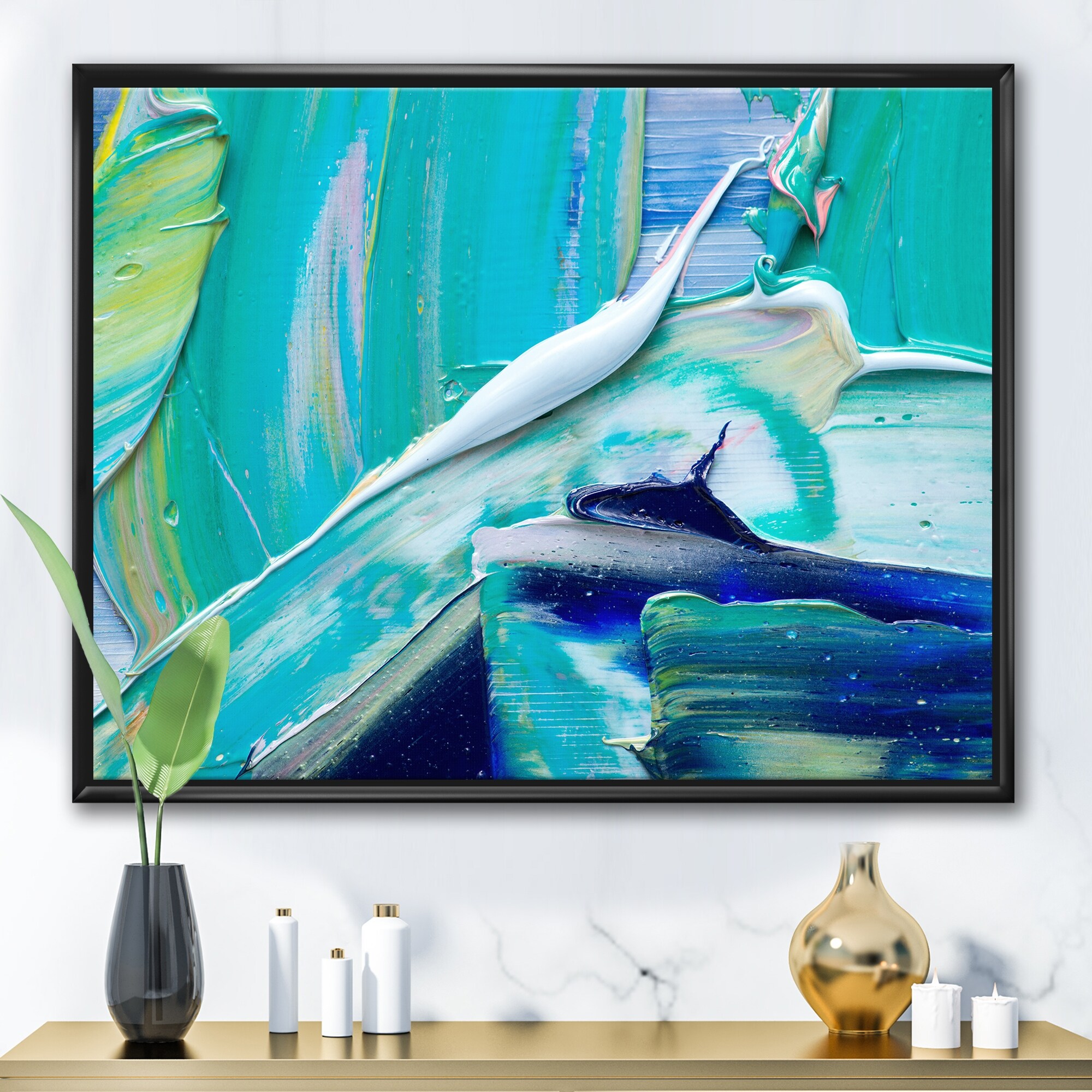 Designart "Aqua Oil Close-Up Composition IX" Modern & Contemporary Framed Canvas Wall Art Print
