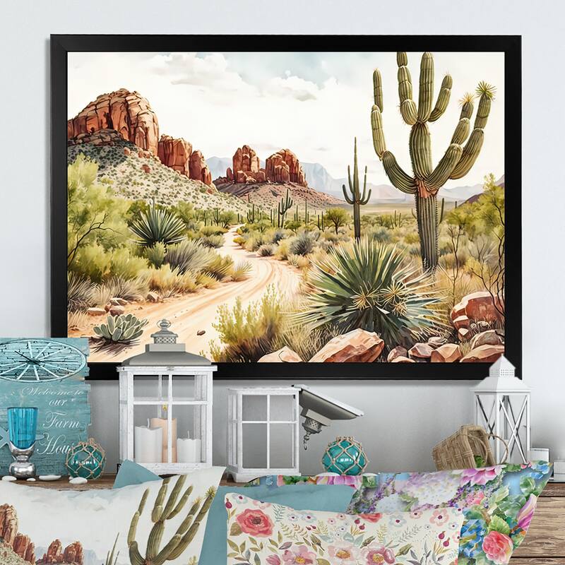 Designart "Arizona Desert Scenery II" Southwestern Framed Art Print