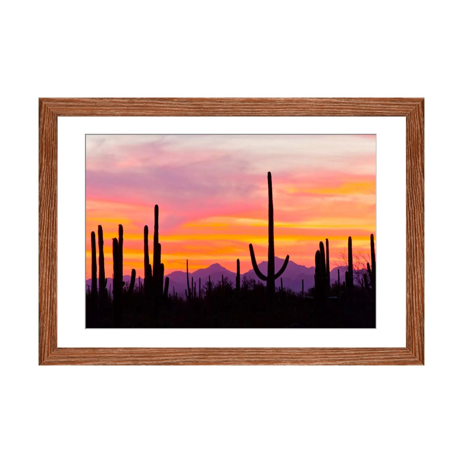 "Arizona sunset over saguaro cacti" Black Framed Print