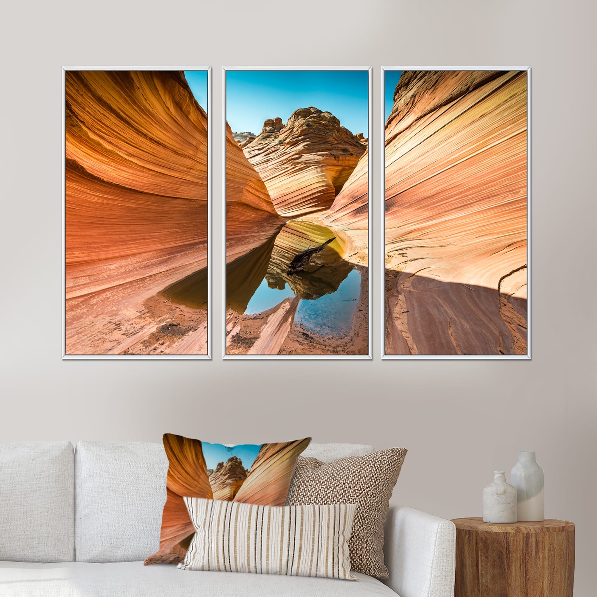 Designart "Water inside Arizona Wave" Landscape Framed Artwork Set of 3 - 4 Colors of Frames