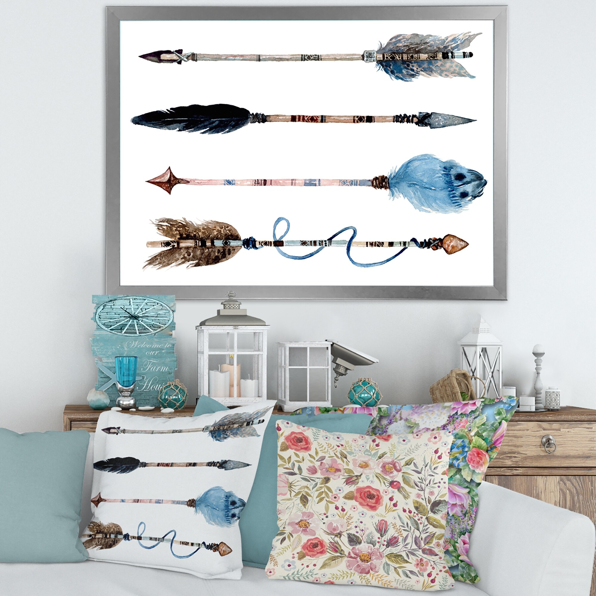 Designart "Tribal Arrows And Feathers" Traditional Framed Art Print