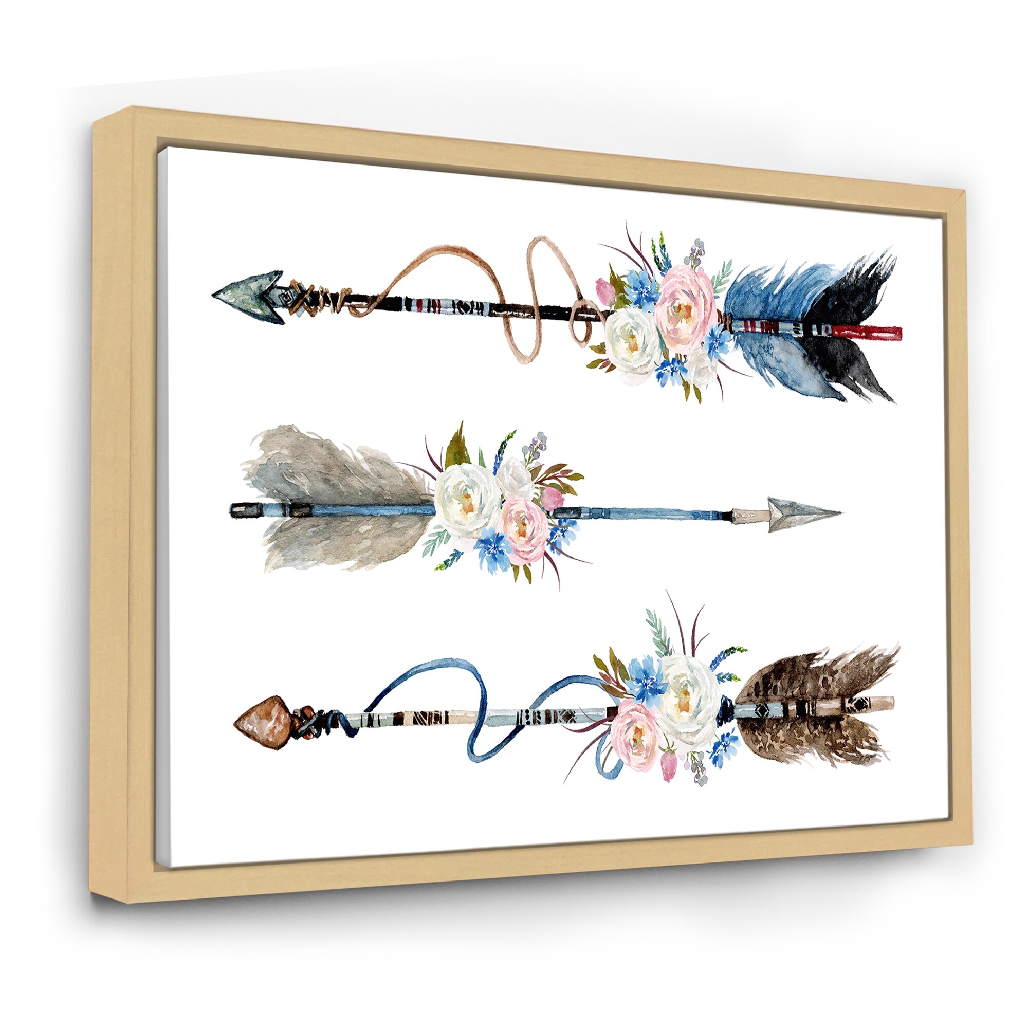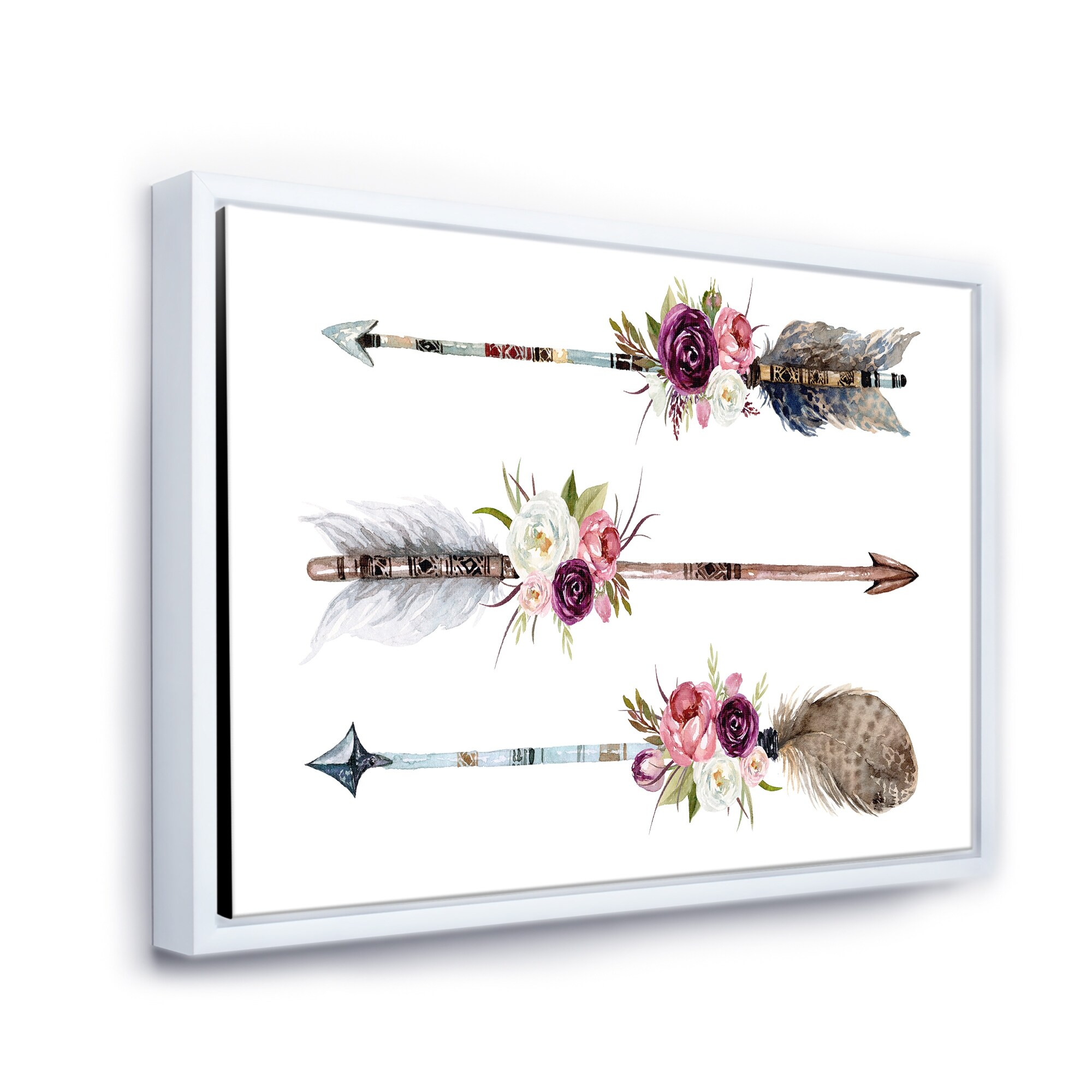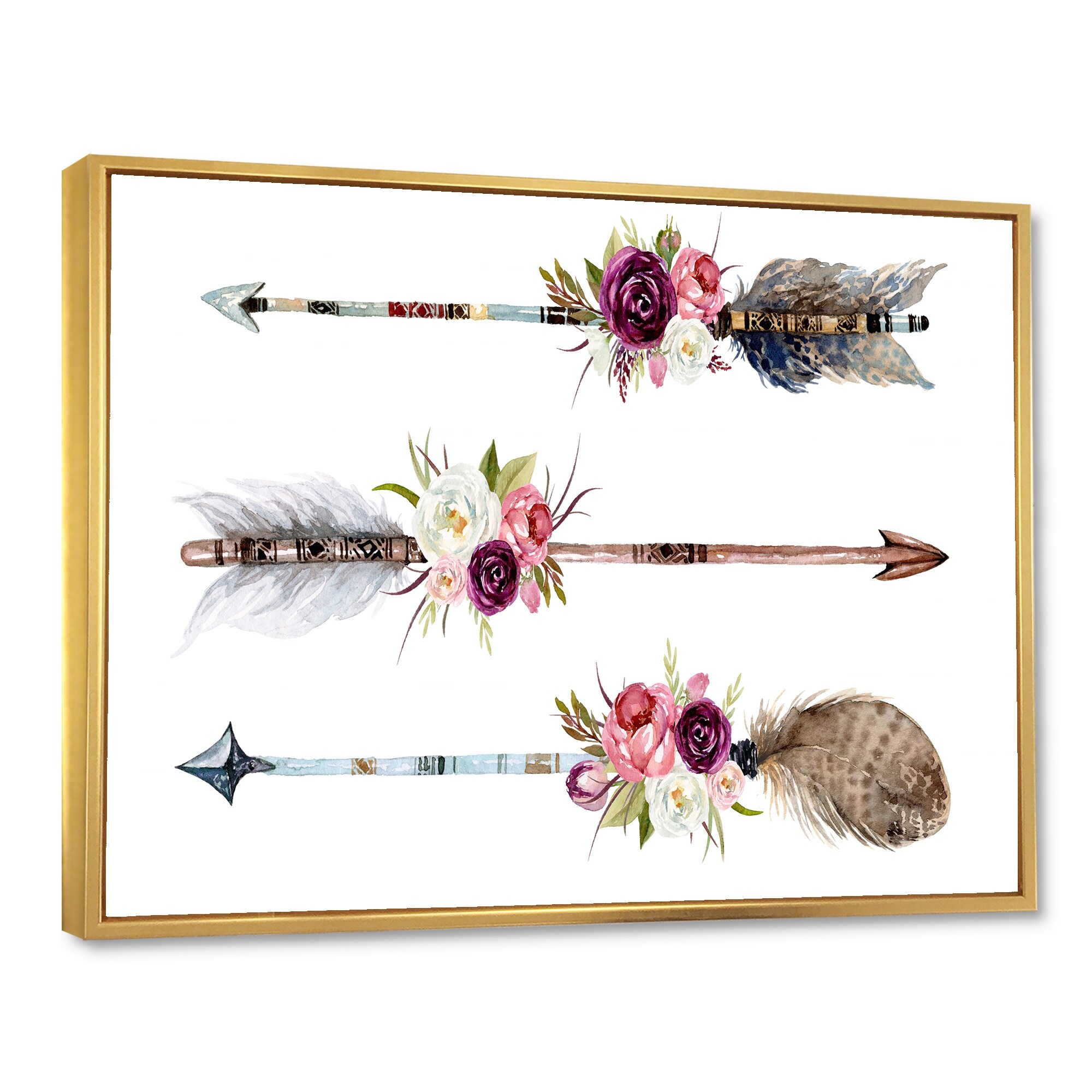Designart "Ethnic Feathers and Flowers on Native Arrows I" Bohemian & Eclectic Framed Canvas Wall Art Print