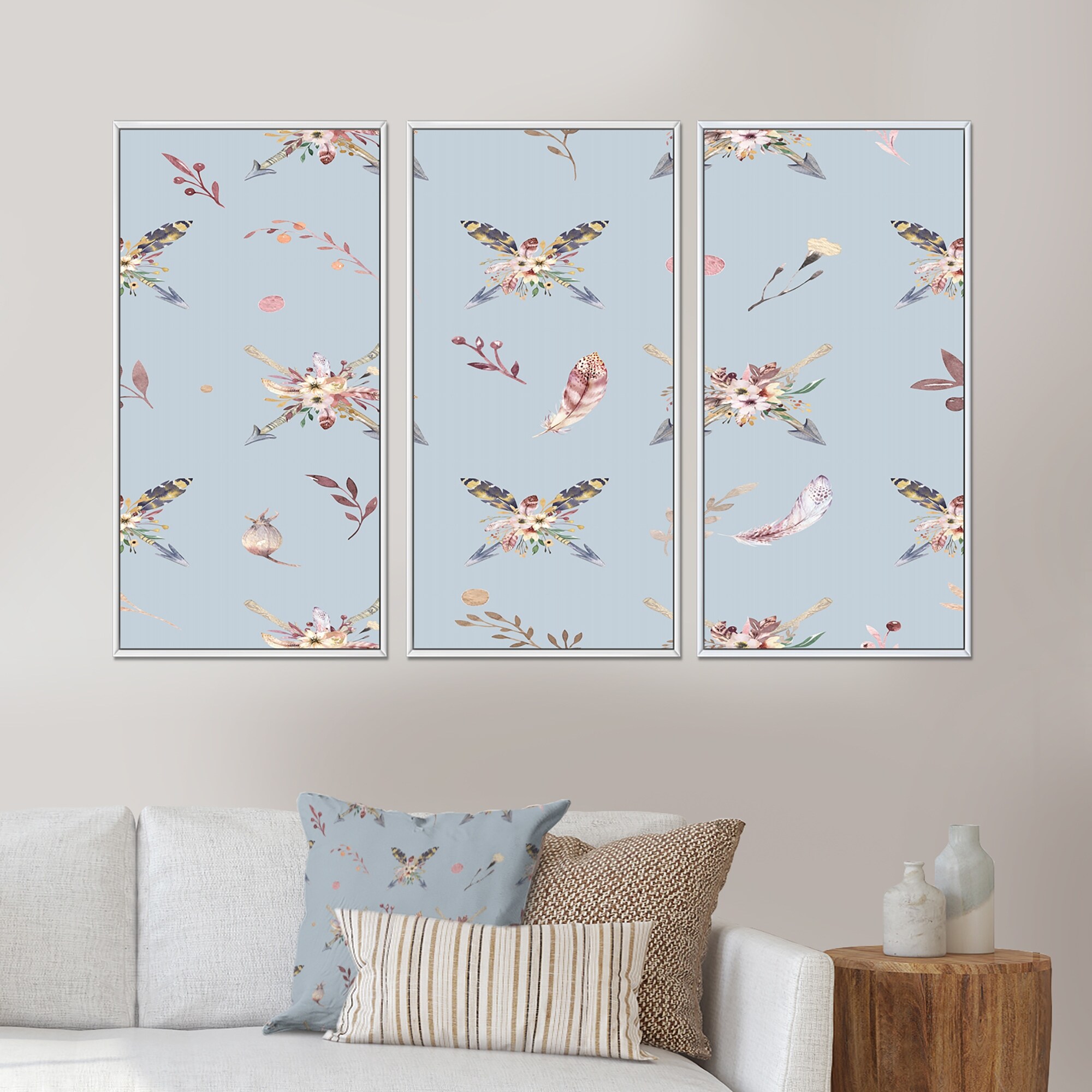 Designart "Bohemian Arrows And Wild Flowers I" Traditional Framed Wall Decor Set of 3 - 4 Colors of Frames