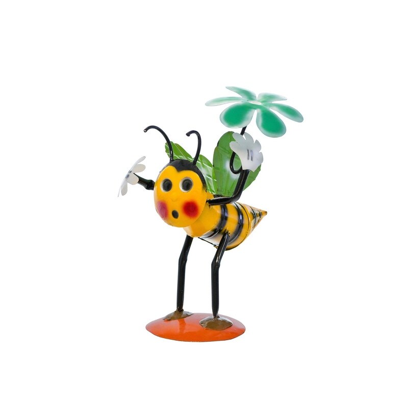 Rustic Arrow Cartoon Bee with Flower Statue Handmade Metal Art