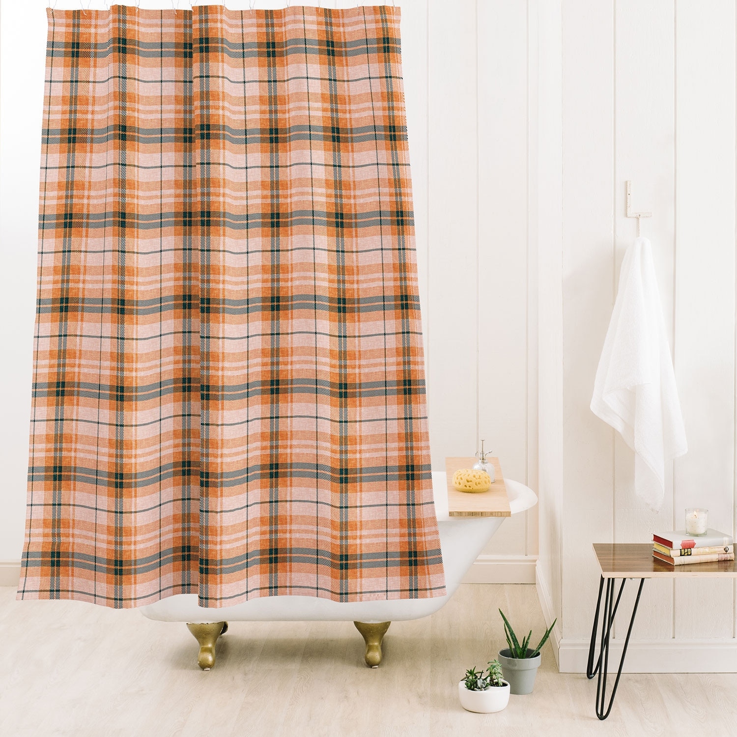 Deny Designs Little Arrow Design Co fall plaid orange dark teal Shower Curtain 74" x 71"