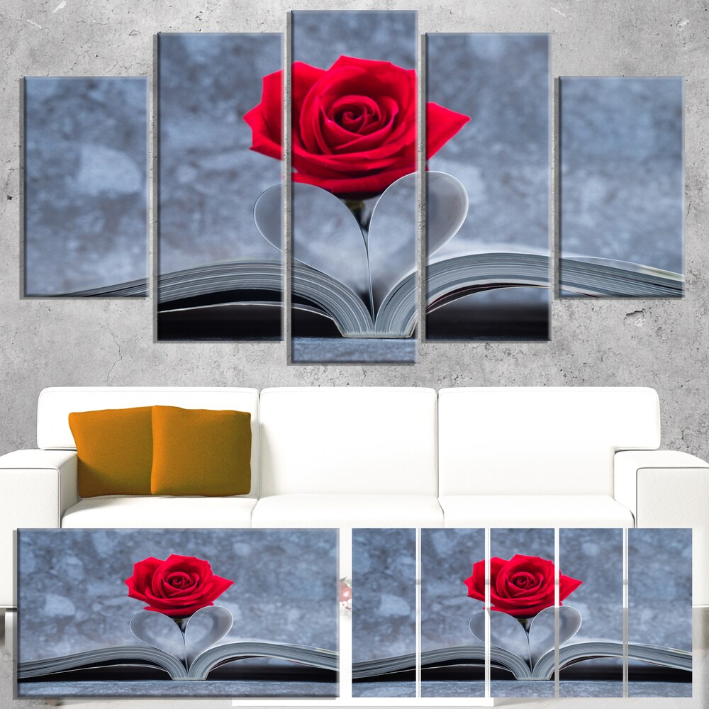 Red Rose Inside the Book - Floral Art Glossy Metal Wall Art