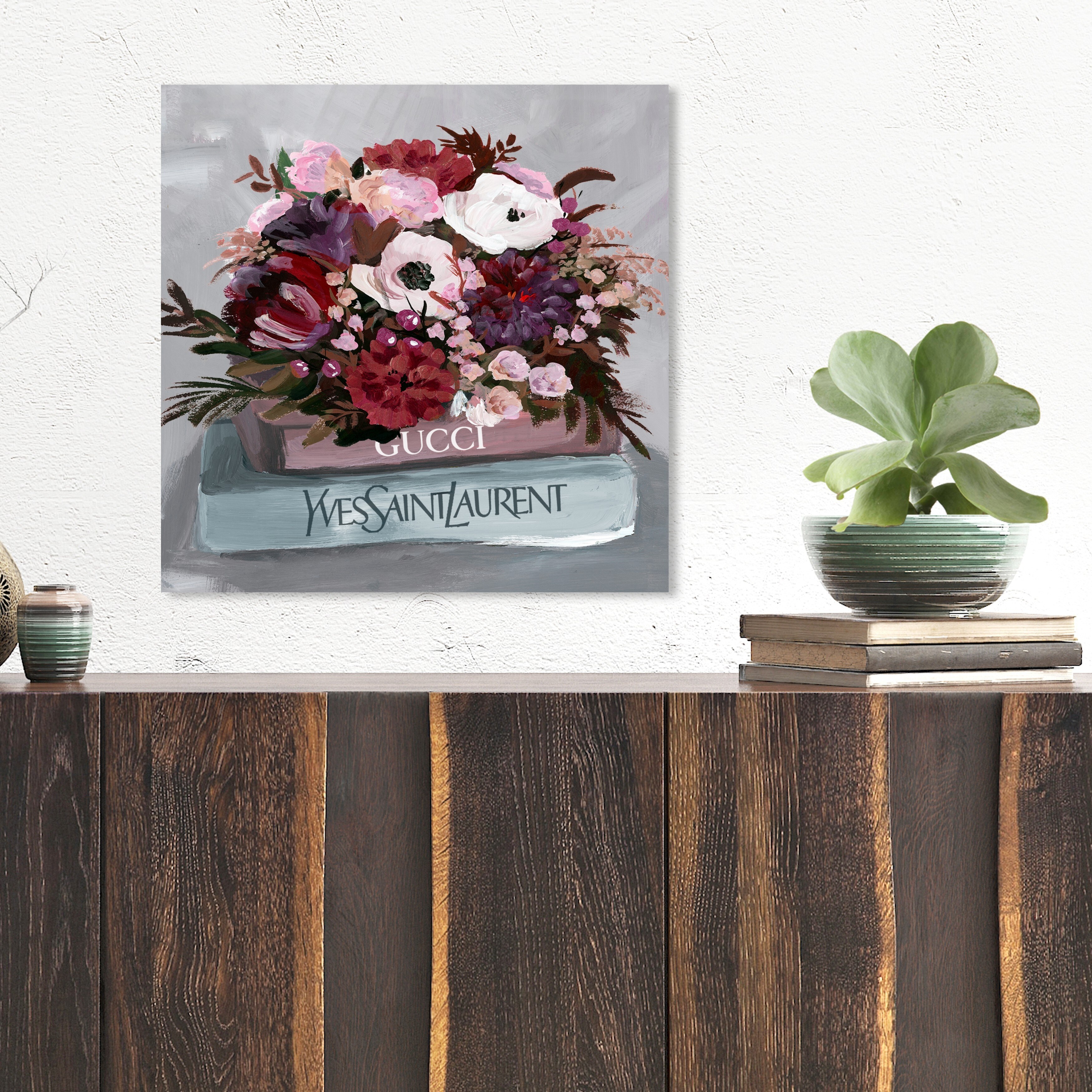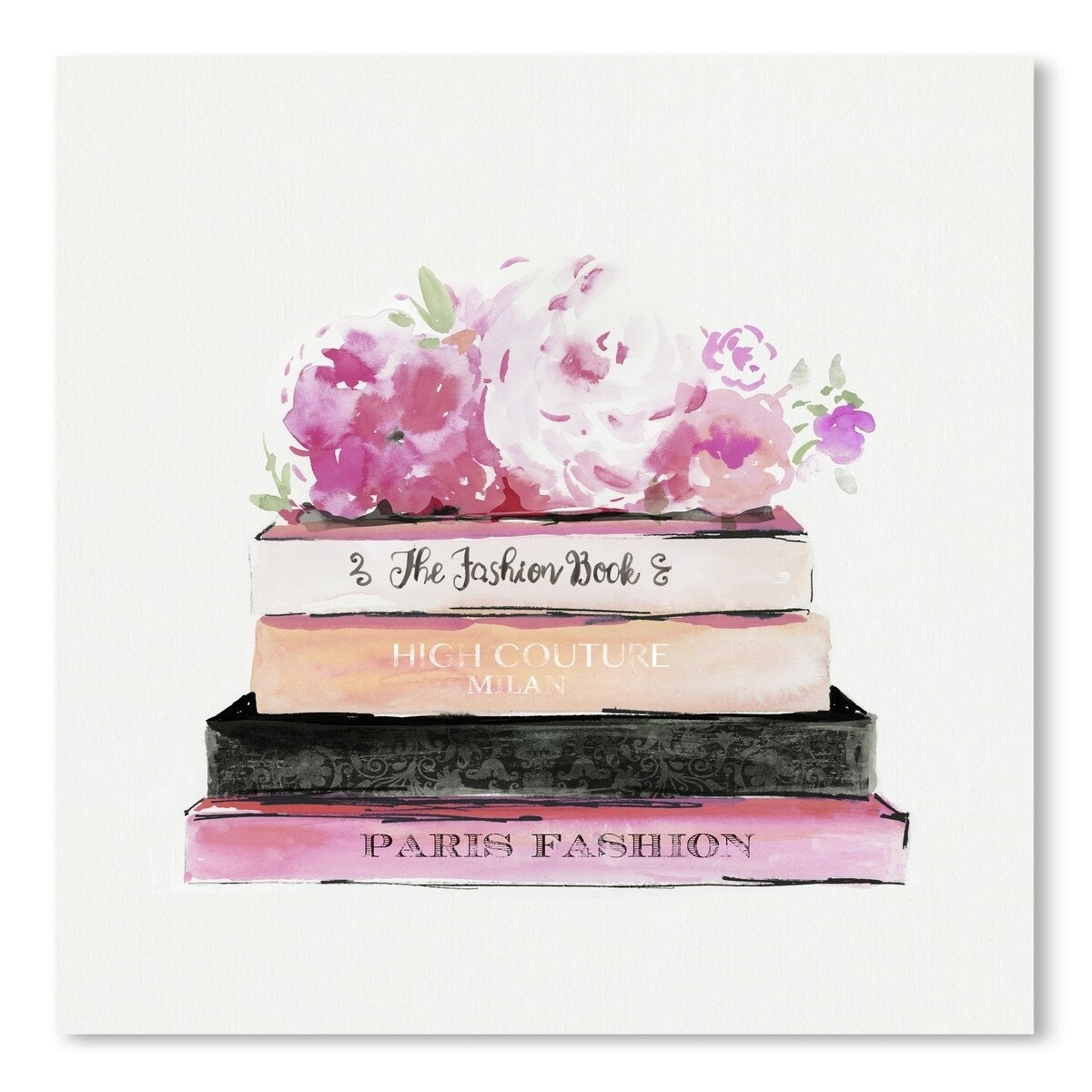 Oliver Gal 'Books and Floral Glam' Fashion and Glam Wall Art Canvas Print Books - Pink, White