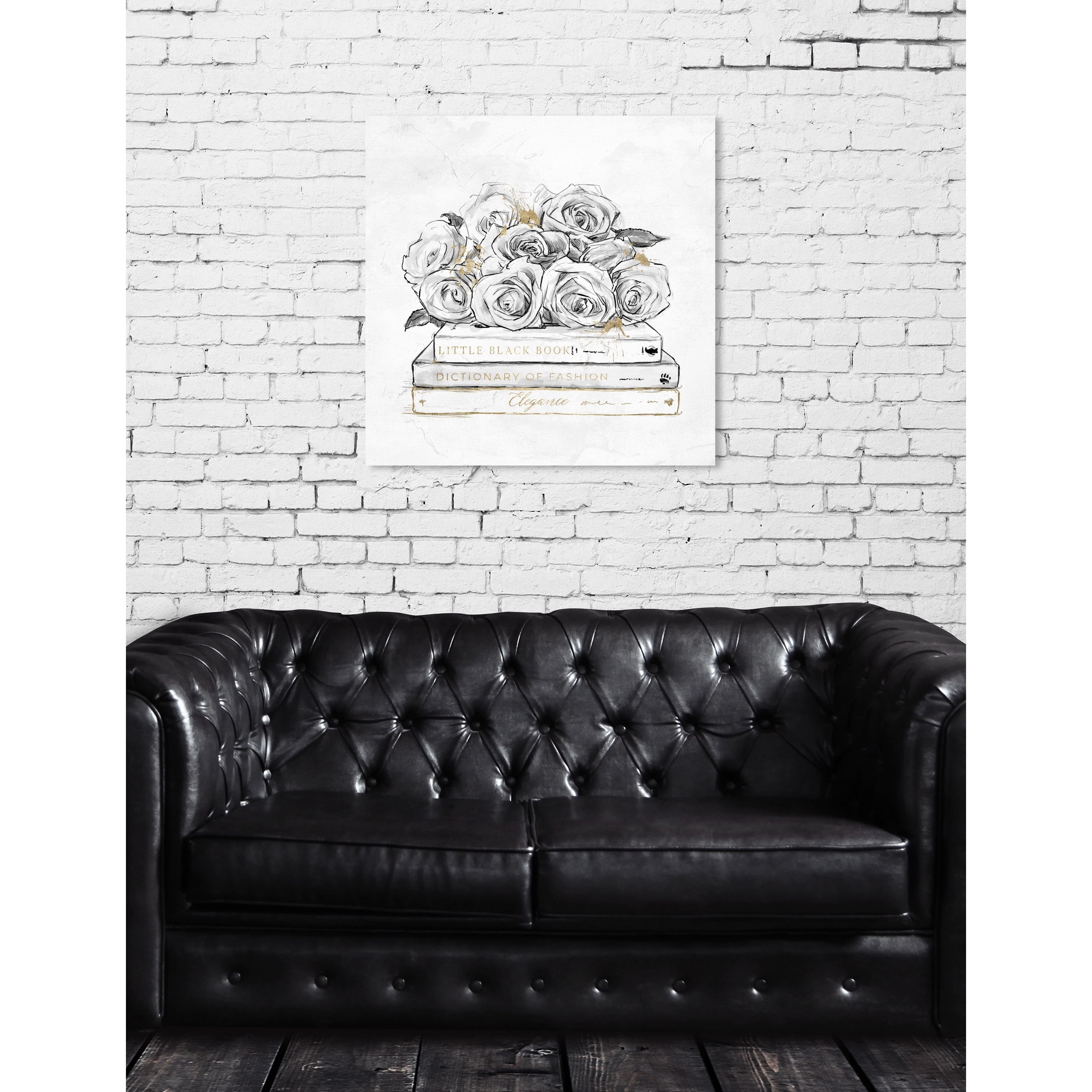 Oliver Gal 'Roses and Books Gold' Fashion and Glam Wall Art Canvas Print - White, Gold