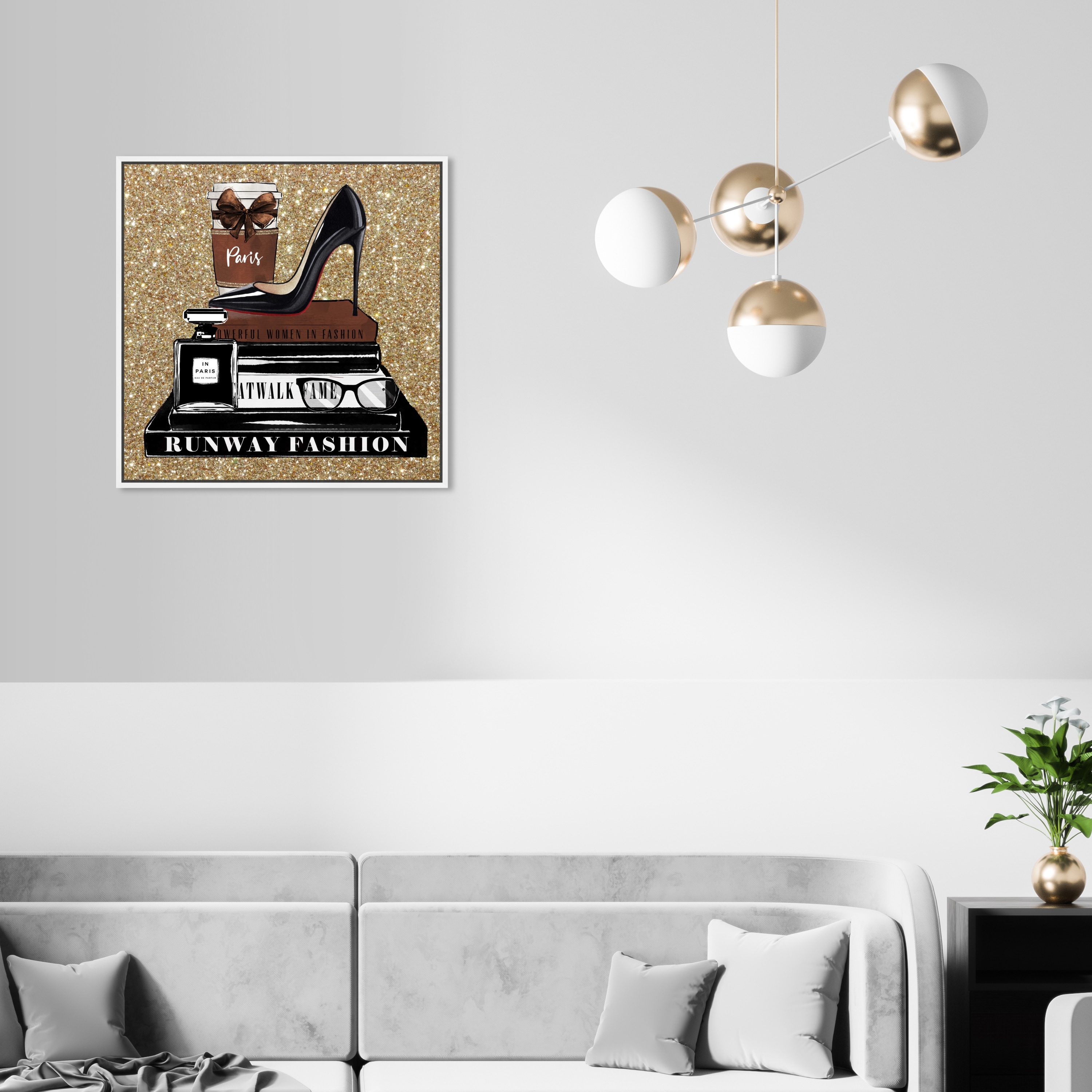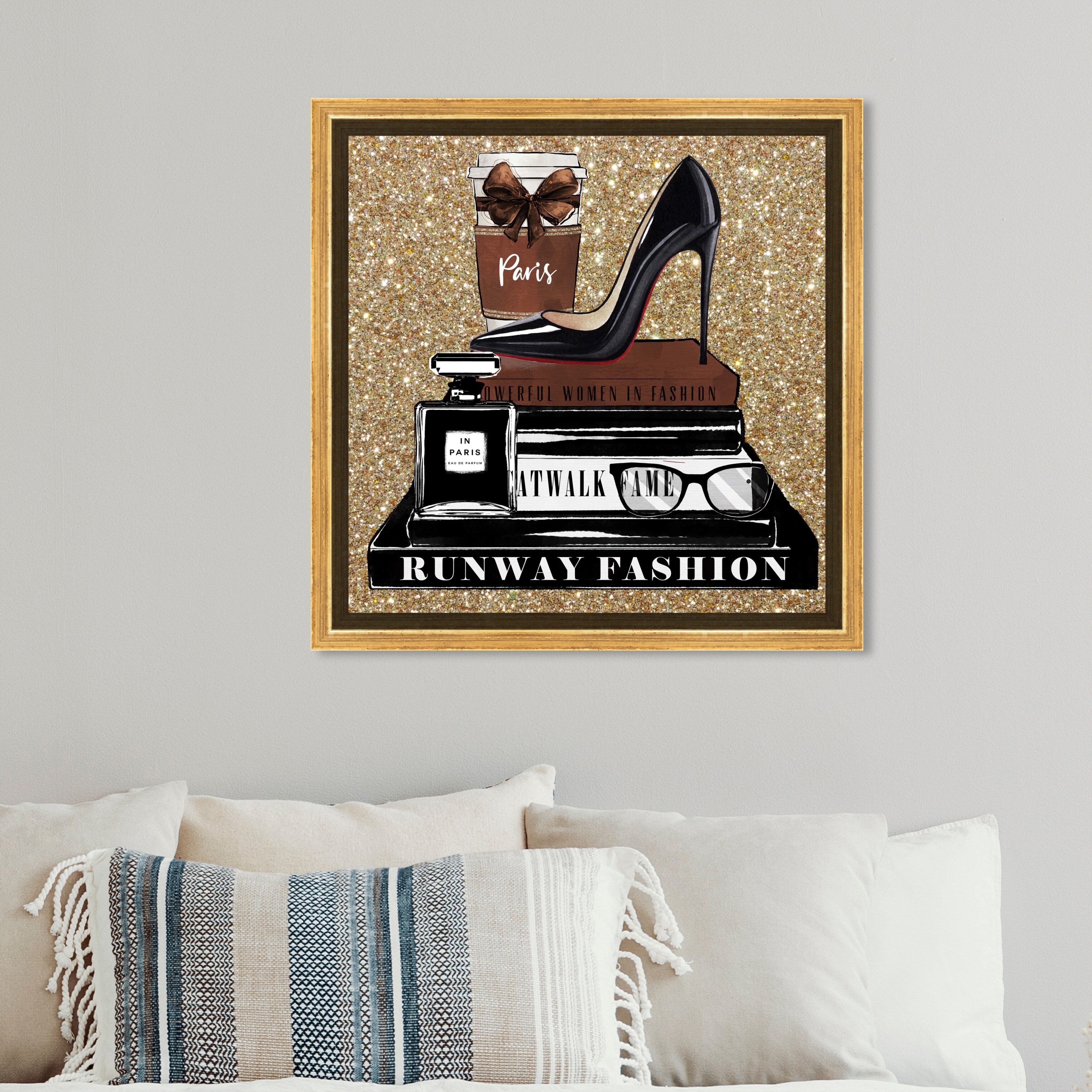 Oliver Gal 'Accessories and Books Gold Glitter' Fashion and Glam Wall Art Framed Canvas Print Books - Pink, Gold