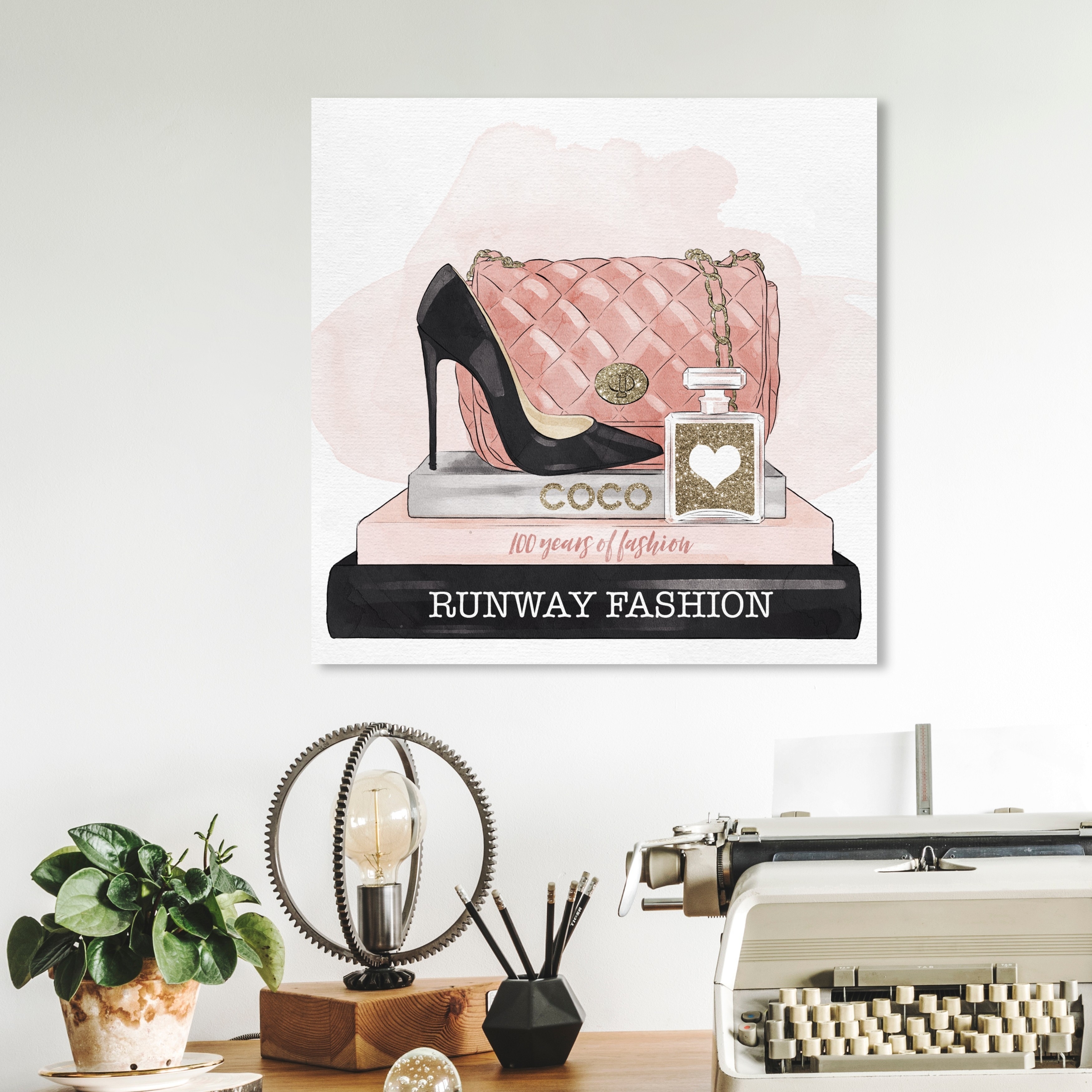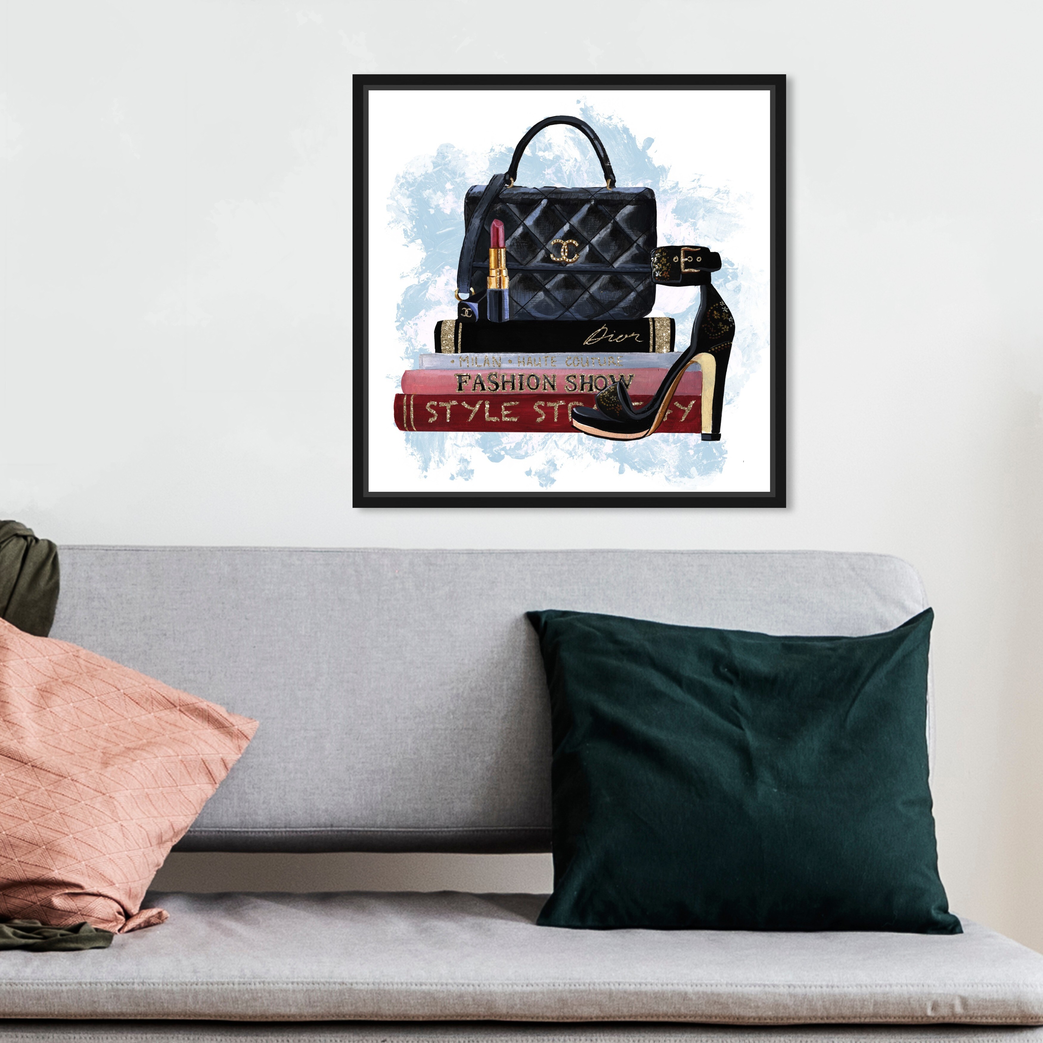 Oliver Gal 'Accessories and Books Black Glitter' Fashion and Glam Wall Art Framed Canvas Print Books - Pink, Black