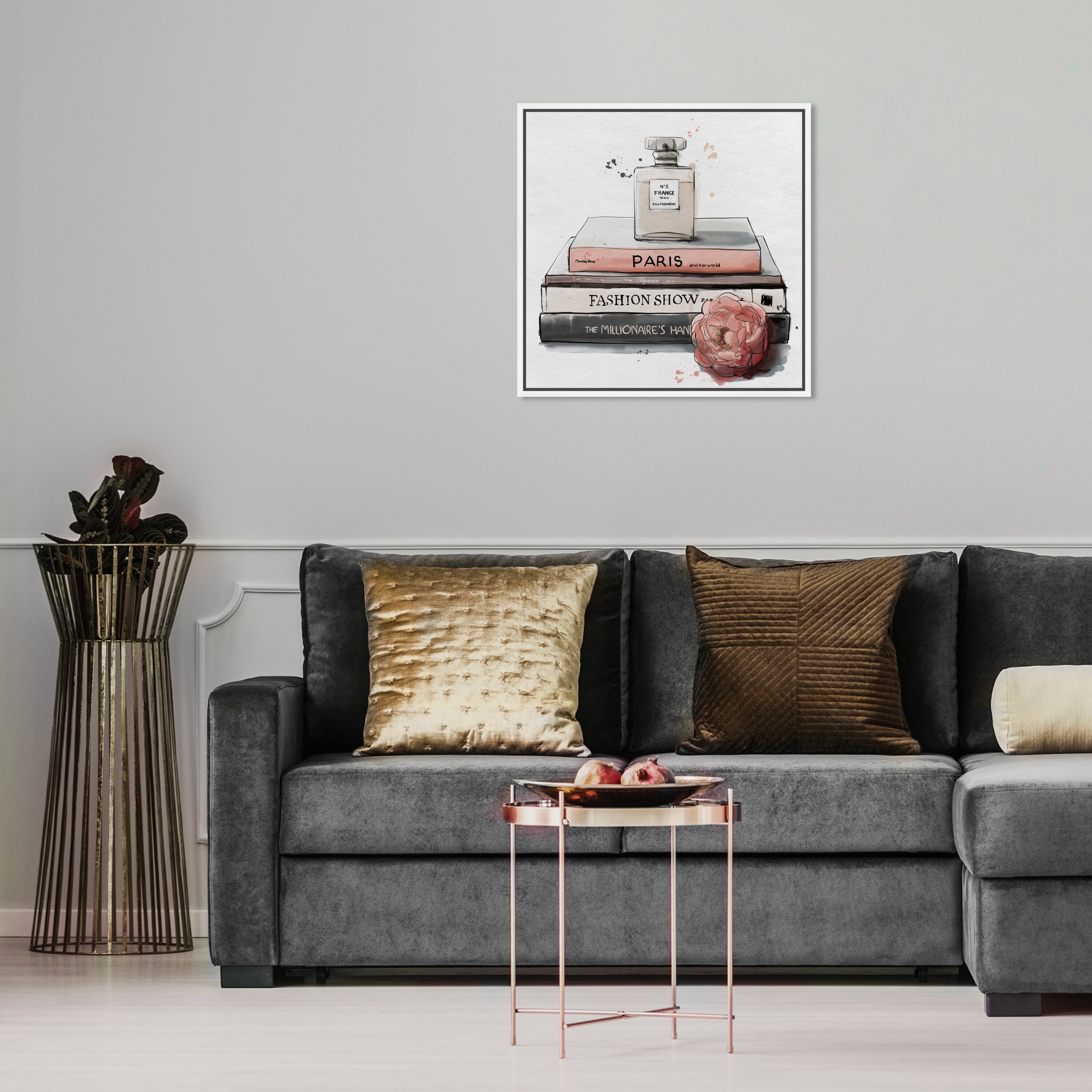 Oliver Gal 'Perfume And Books Gold' Fashion and Glam Wall Art Framed Canvas Print Perfumes - Gold, White