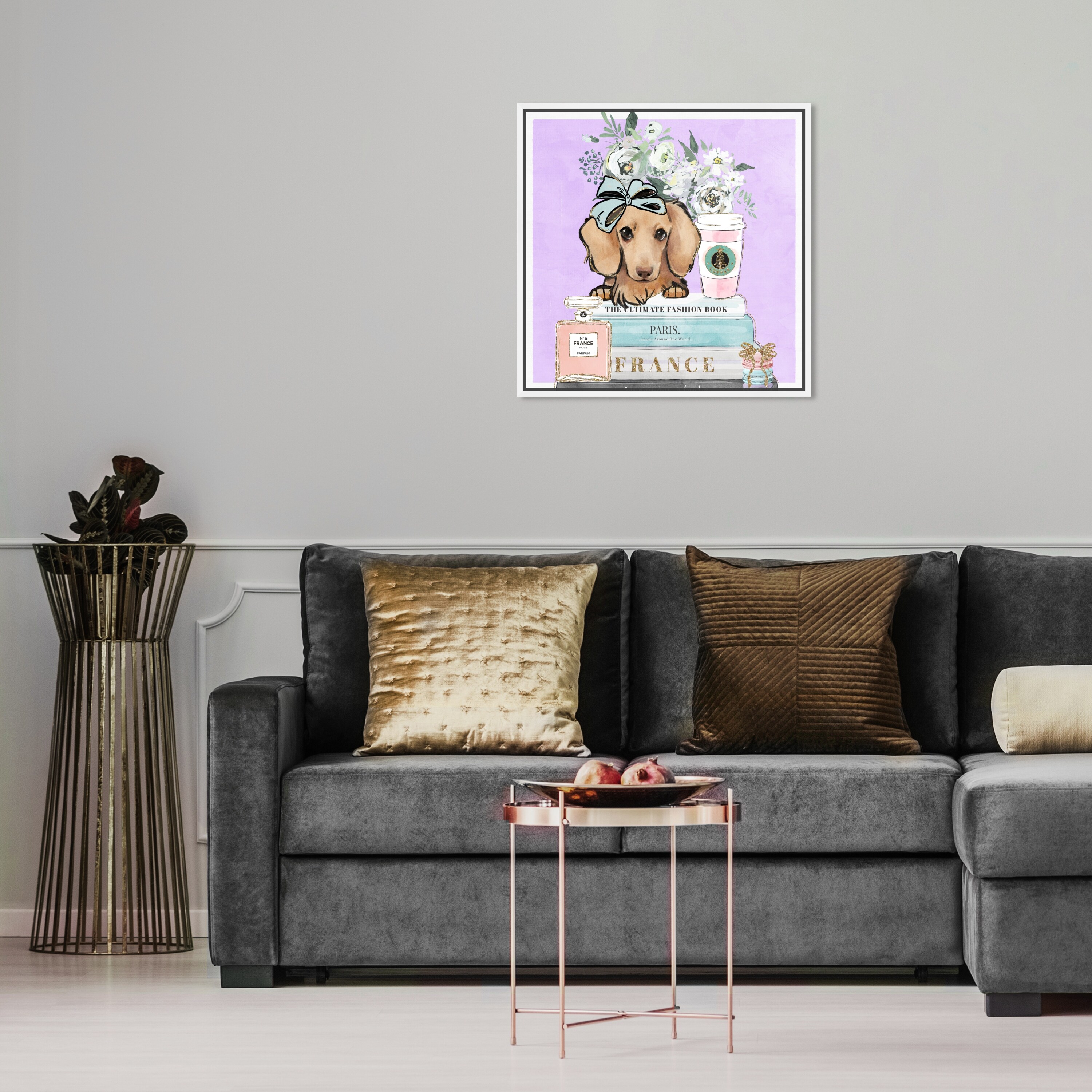 Oliver Gal 'Doxie Fashion Books Love Lavender' Purple Wall Art Canvas