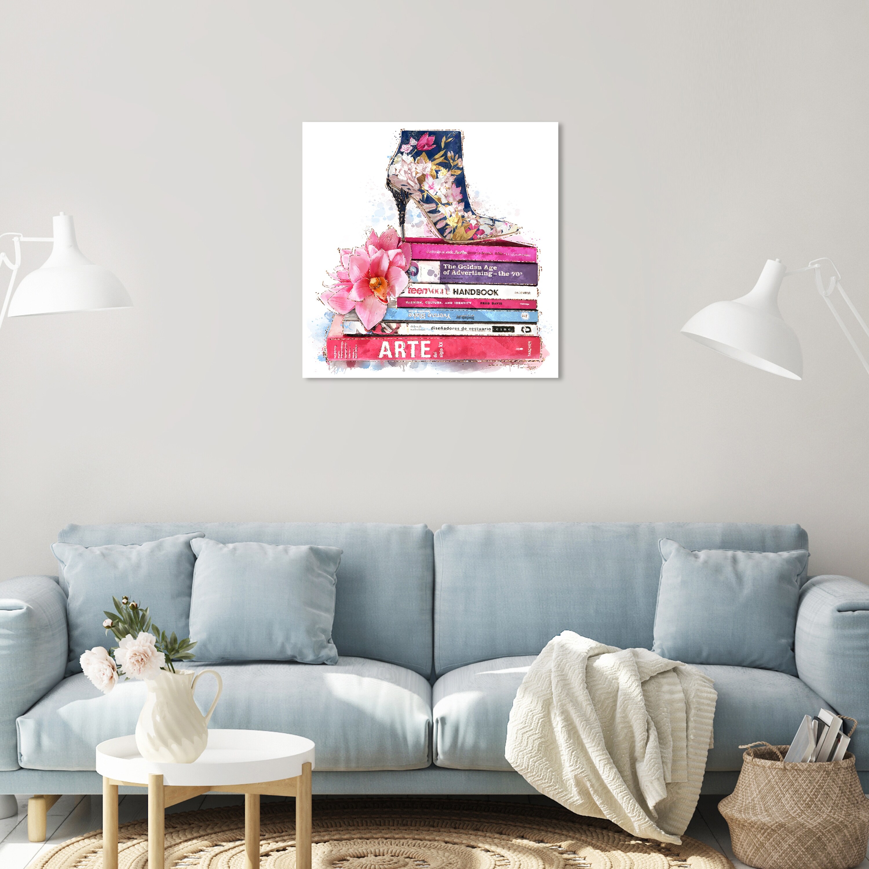 Oliver Gal 'The Ultimate Floral Boot' Fashion and Glam Wall Art Canvas Print Books - Pink, Blue